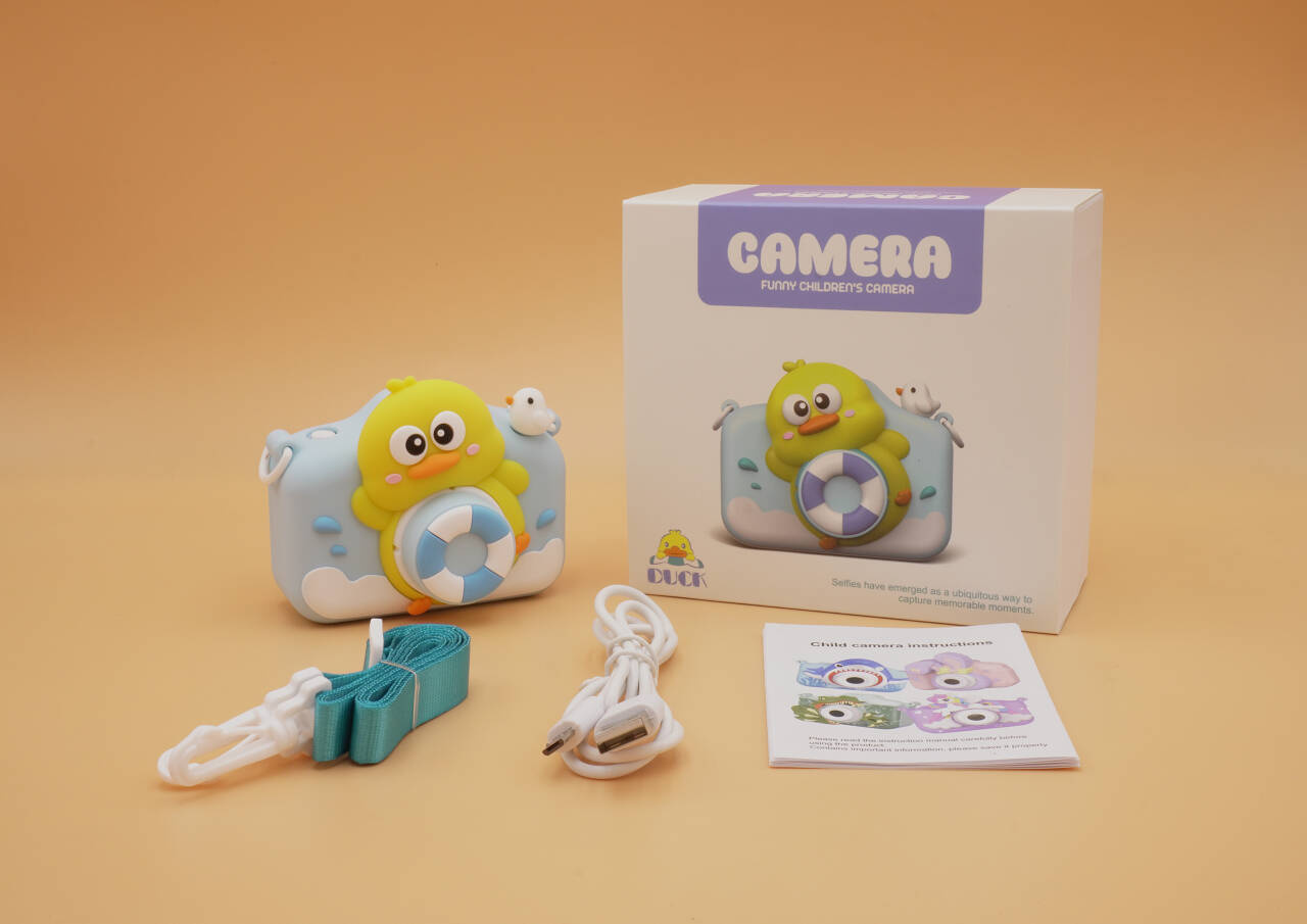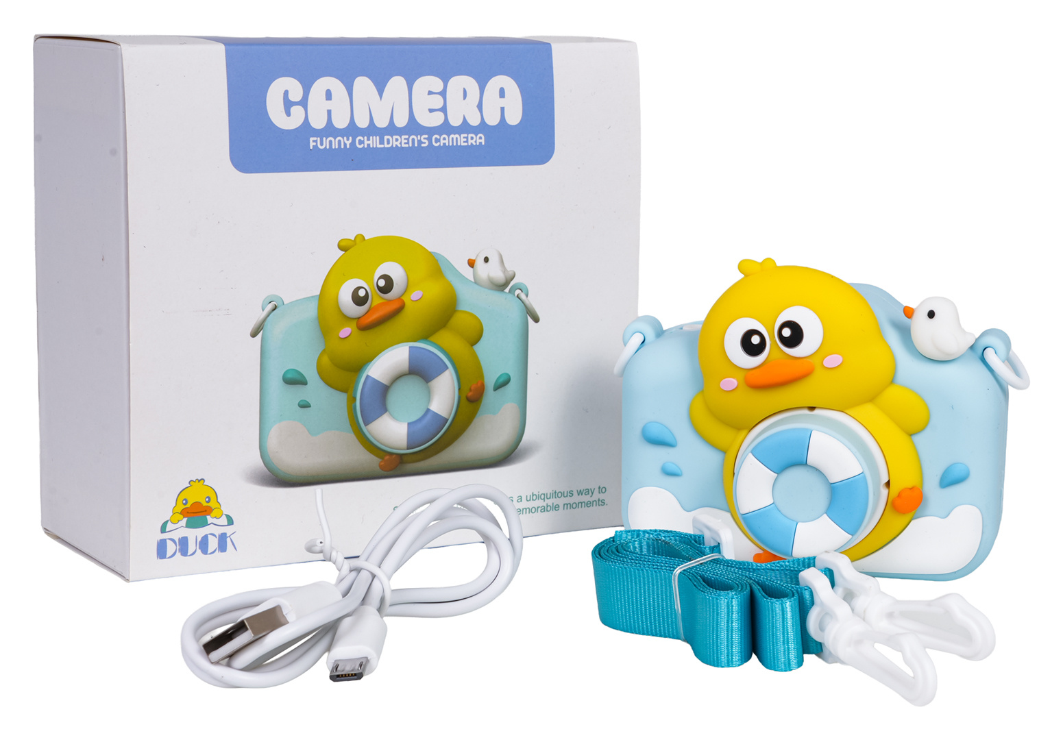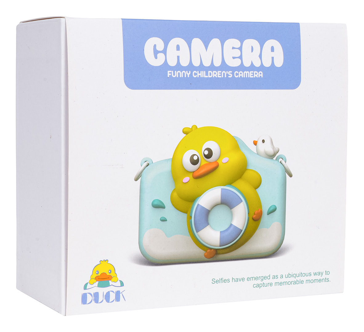 Fotoaparát s funkcí nahrávání, dalšími efekty pro zdobení fotografií a hrami v sadě pro děti od šesti let. Sada byla vyrobena z nejkvalitnějších materiálů s důrazem na detaily. Pořízenou fotografii lze ozdobit různými zábavnými efekty. Navíc má přístroj v paměti 5 her. Fotoaparátem lze pořídit až 50 fotografií bez karty. S kartou 32GTF ok. 8500 fotografií. V sadě se nachází šňůrka, nabíjecí USB kabel a návod, stejně jako gumové pouzdro na objektiv s legrační kachničkou a záchranným kruhem. Přístroj je napájen akumulátorem typu 5 V 1000mAh (v balení).