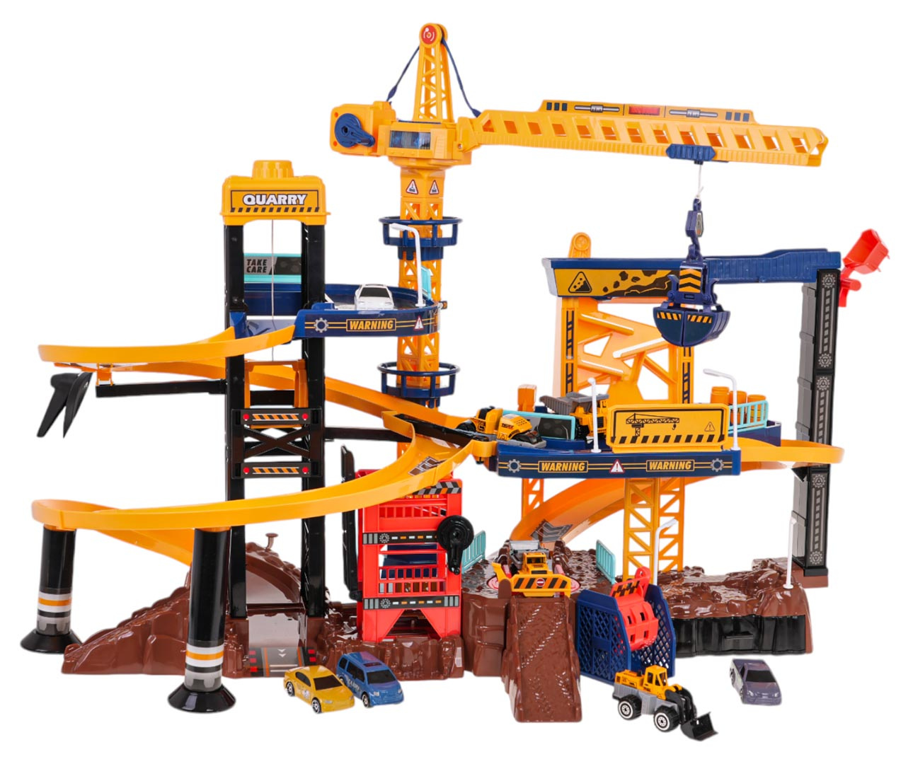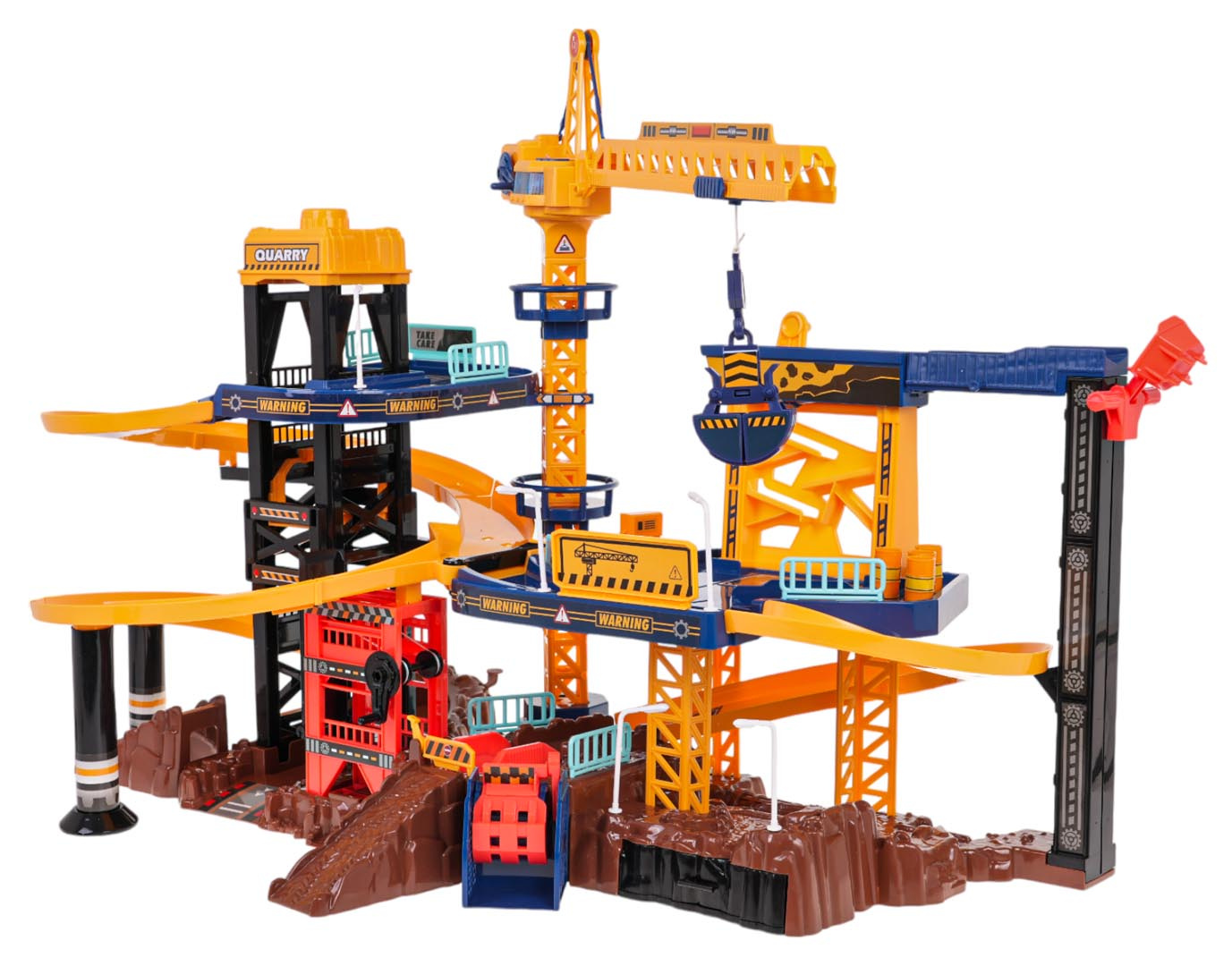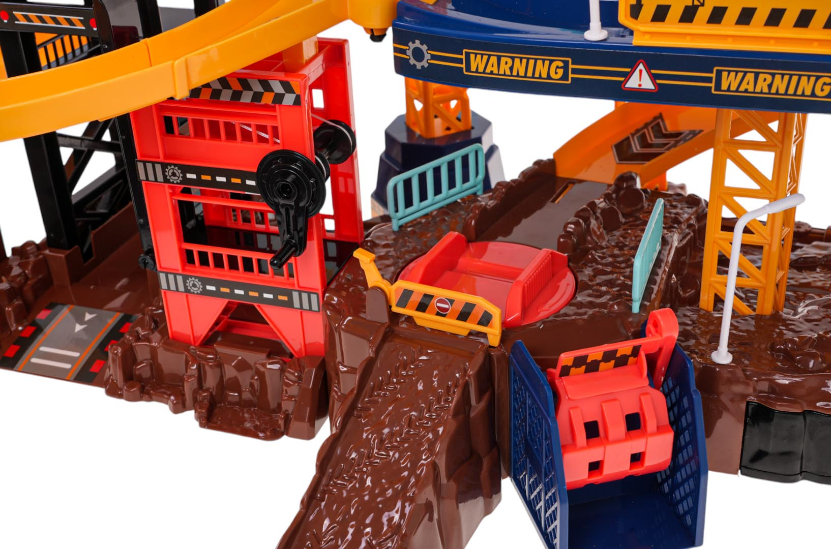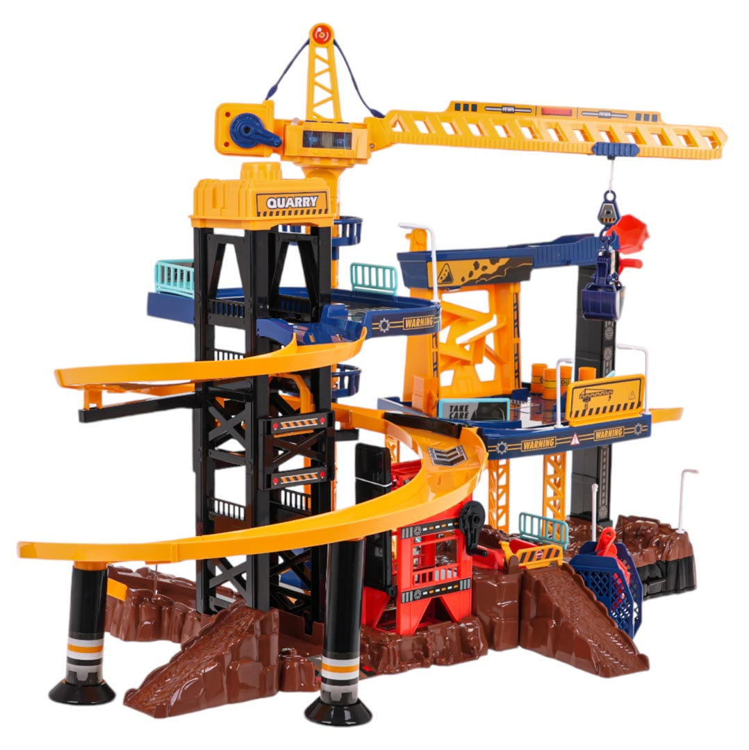Sada navíc obsahuje čtyři auta, čtyři stavební vozidla, kinetický písek a stavební příslušenství. Hračka má zvukové a světelné efekty, díky nimž je každý herní zážitek ještě realističtější a poutavější.Po sestavení měří sada přibližně 80 x 55 x 46 cm a nabízí prostornou hrací plochu. Sada obsahuje jeřáb s pohyblivým ramenem a zvukovým panelem, ručně ovládaný výtah a padací most, který lze otevírat a zavírat pomocí speciální páky.
