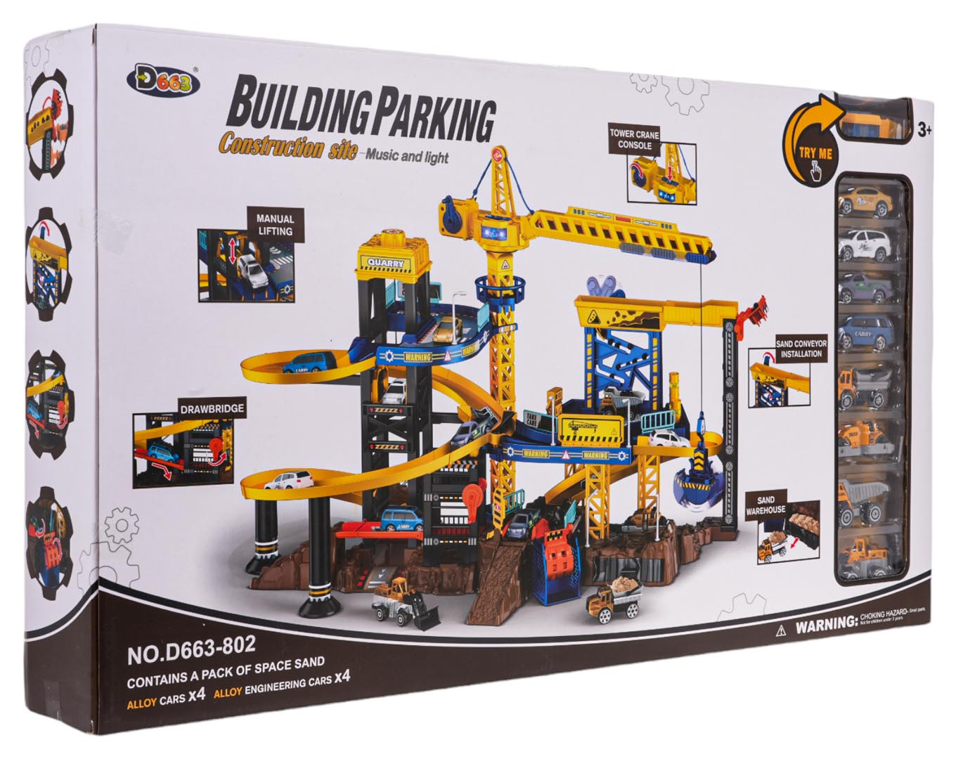 Tato interaktivní třípatrová sada je skutečnou lahůdkou pro malé stavitelské fanoušky. Garáž, vyrobená z vysoce kvalitního plastu a navržená s důrazem na detail, nabízí nepřeberné množství atrakcí, včetně otočného ramene jeřábu, posuvného háku, pohyblivého výtahu, otevíracího padacího mostu a dokonce i miniaturního zásobníku písku.