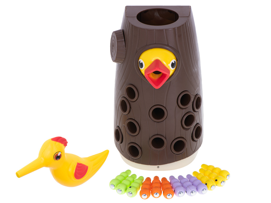 Tato magnetická hra spočívá v chytání červů s magnetickou hlavou ptáčka, jehož dlouhý zobák je zakončen magnetem! Když červy vytáhnete, můžete nakrmit mládě, které čeká s otevřeným zobákem!