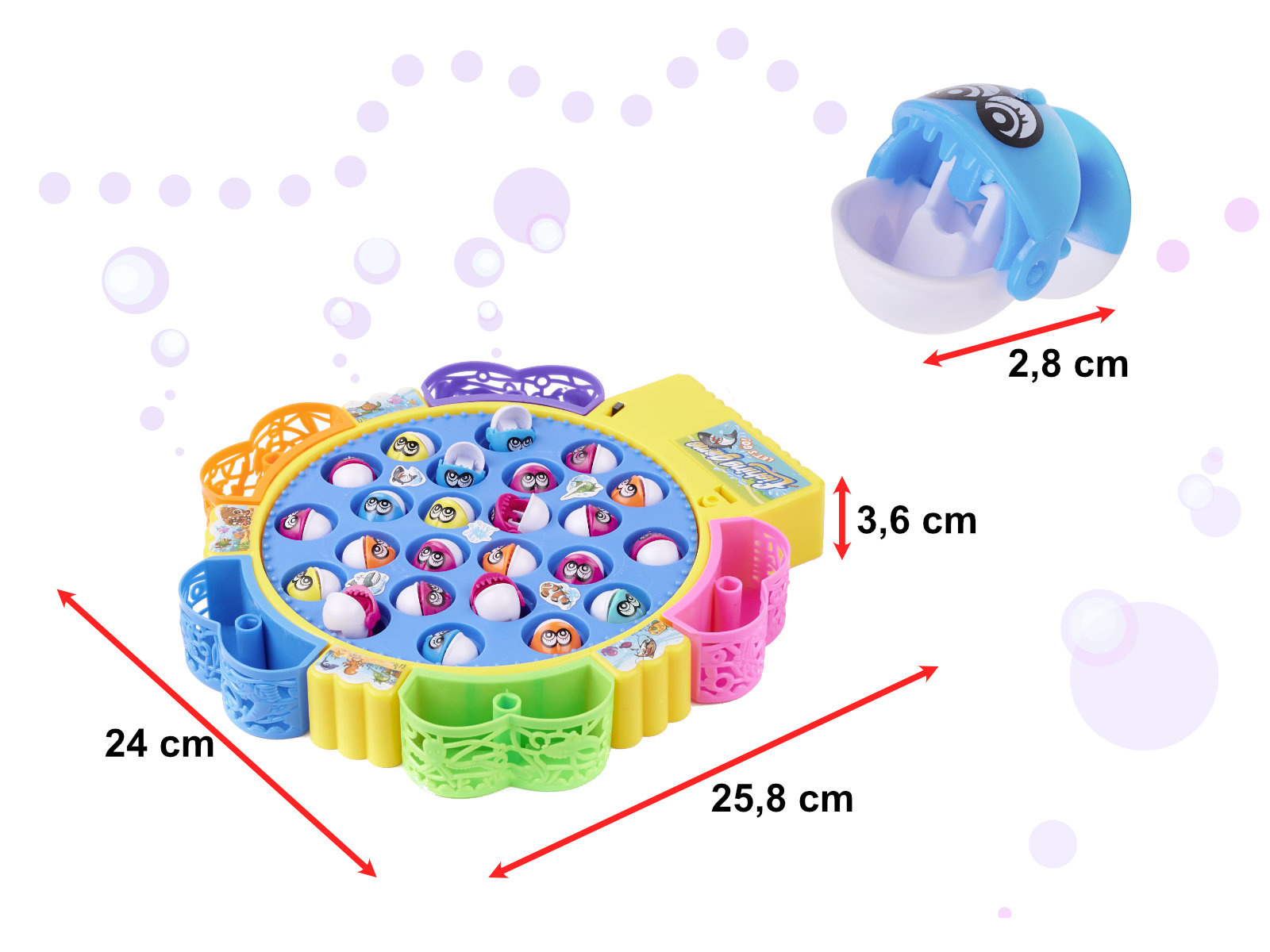 - Vítězem se stává ten, kdo uloví co nejvíce ryb na rybářský prut, který se vznáší - točí se po celé plošině.