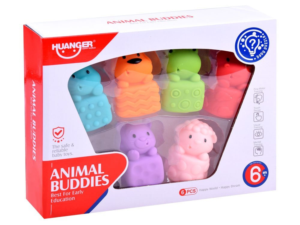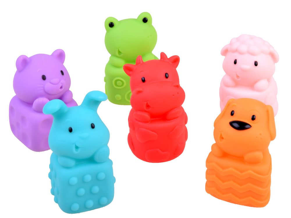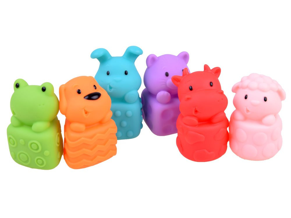 Zvířata jsou vyrobena z měkké gumy a mají otvor, kterým lze stříkat vodu. Každé ze zvířat je umístěno na postavě s potrubím. Při hře s gumovými zvířátky si děti osvojí a upevní barvy a tvary.