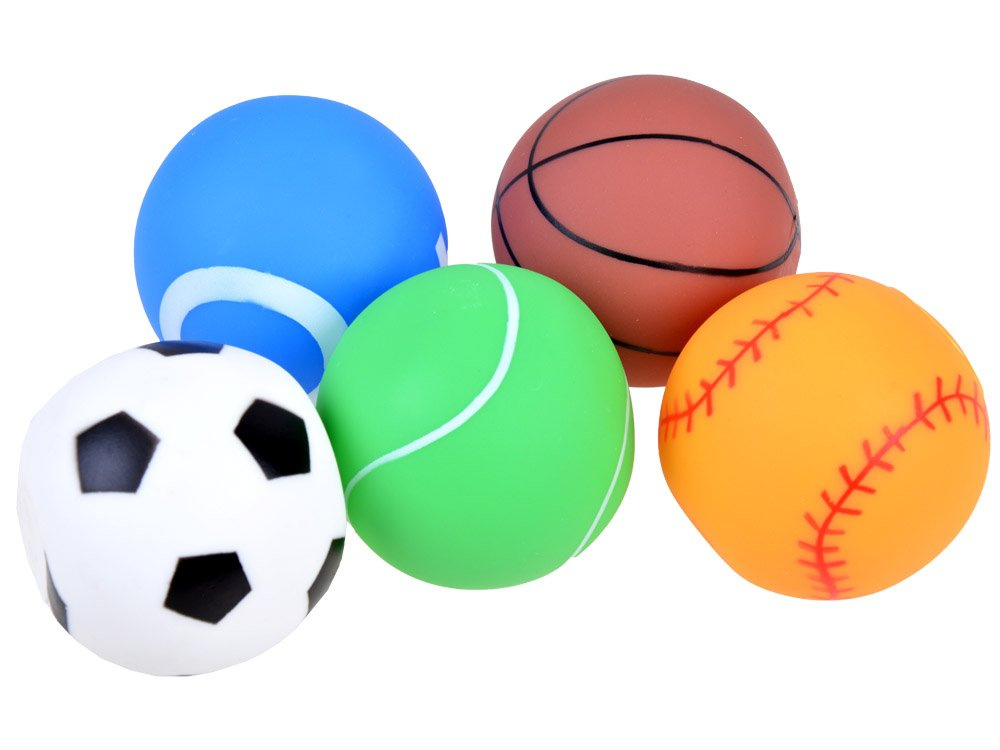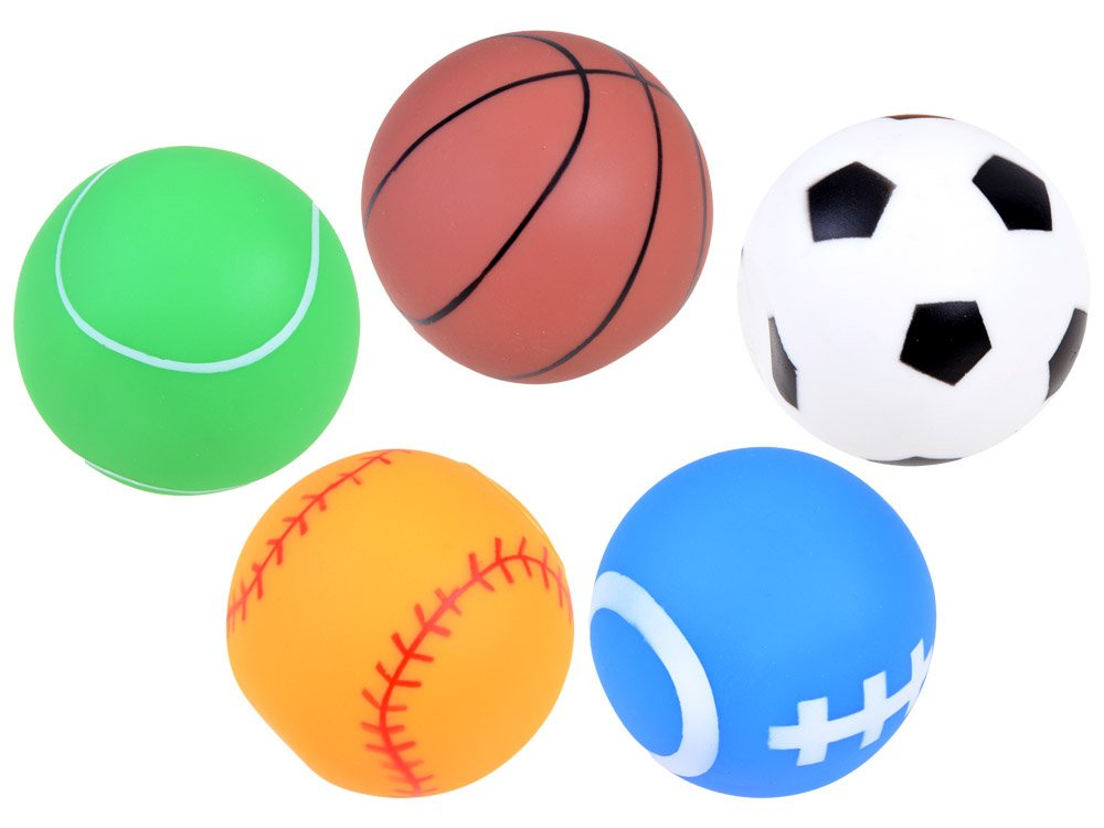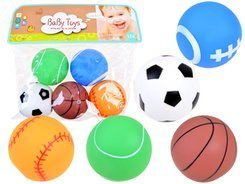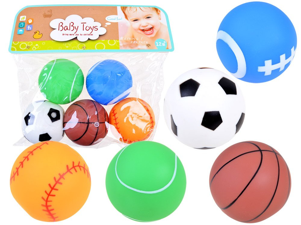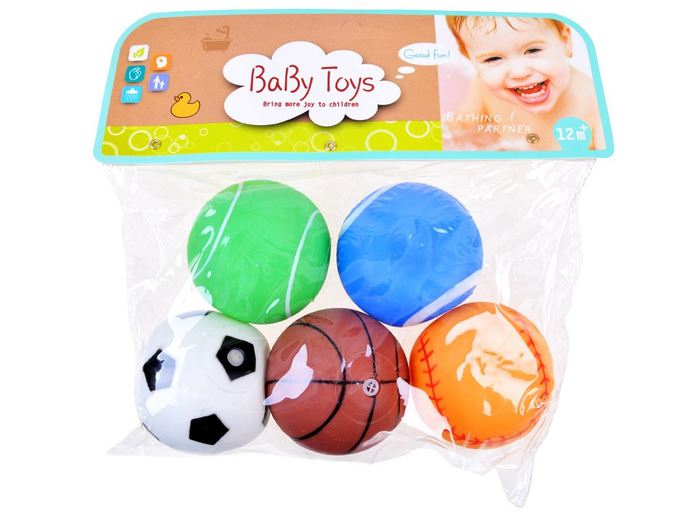 Tato sada pěti gumových míčků s pískátkem se bude líbit každému dítěti. Hračka je celá z gumy a má skvělou barvu a grafiku odpovídající danému míči. Hračka má zabudované pískátko, takže když ji dítě stiskne, vydává legrační zvuk. Hračka se hodí do vany, na pískoviště nebo na učení házení a chytání.