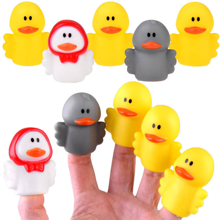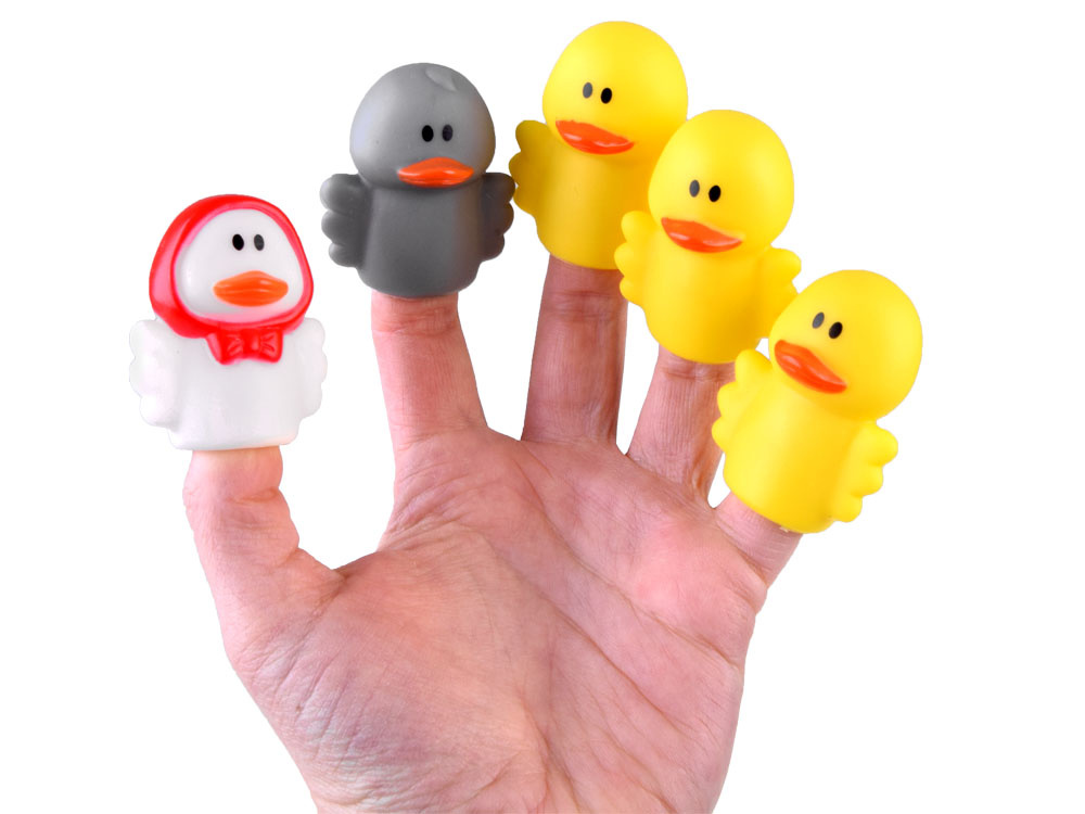 Figurky kachniček se skvěle hodí ke čtení pohádky o ošklivém káčátku, díky maňáskům si budete moci zahrát scénky z pohádky. Hra s gumovými kačenkami se hodí při čtení knížky, hraní ve vaně nebo na pískovišti. Sada malých žlutých kachniček, jedné šedé a jedné bílé v červeném závěsu vyústí ve vynikající kreativní hru.