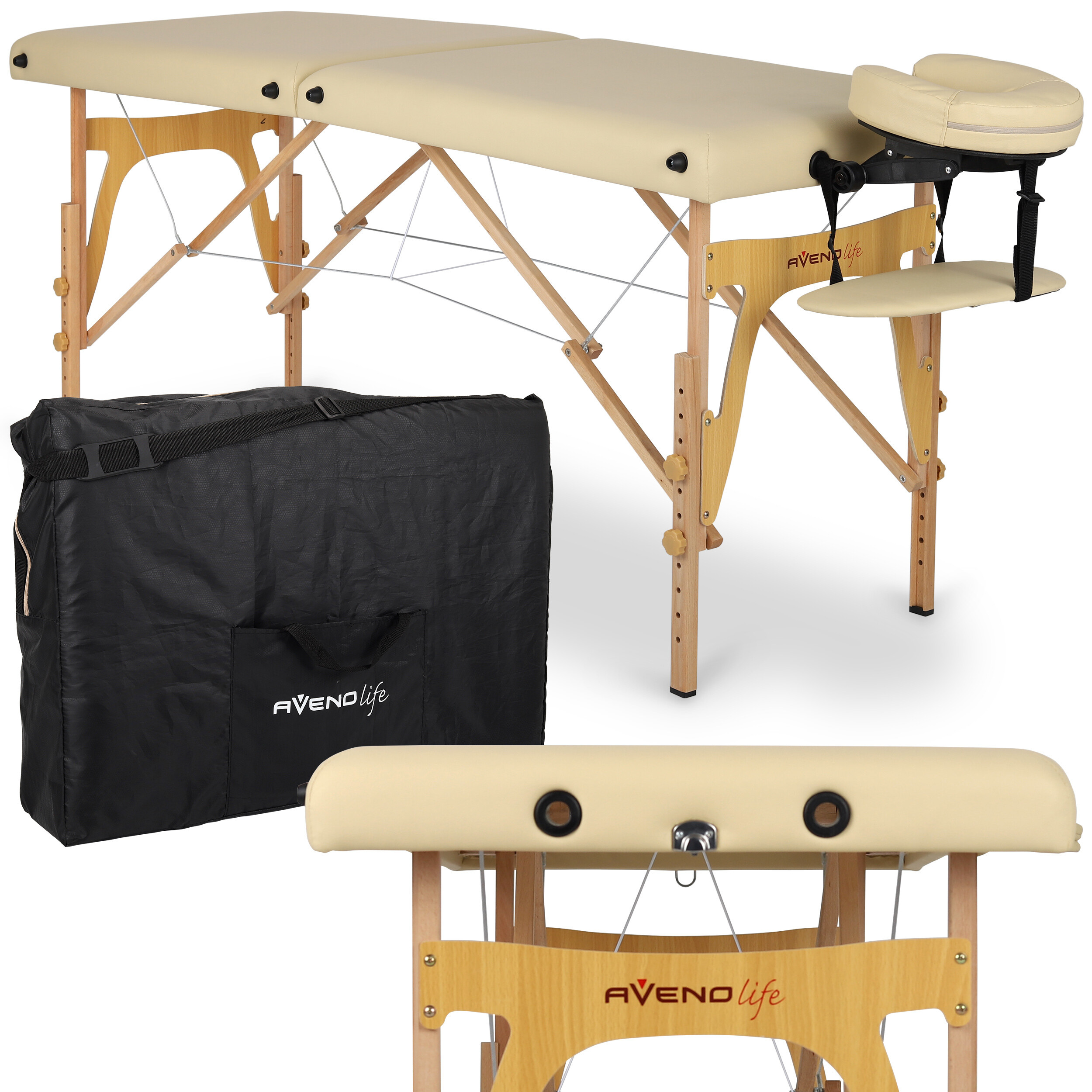 Velice pohodlné přenosné dvoudílné masážní lehátko s opěrkou hlavy, otvorem na obličej.