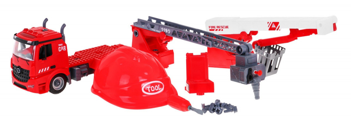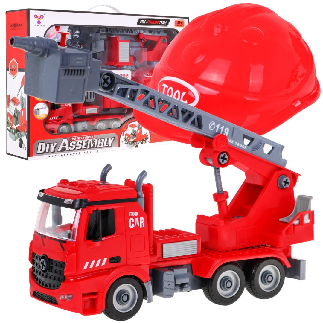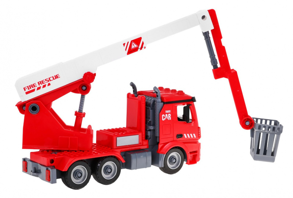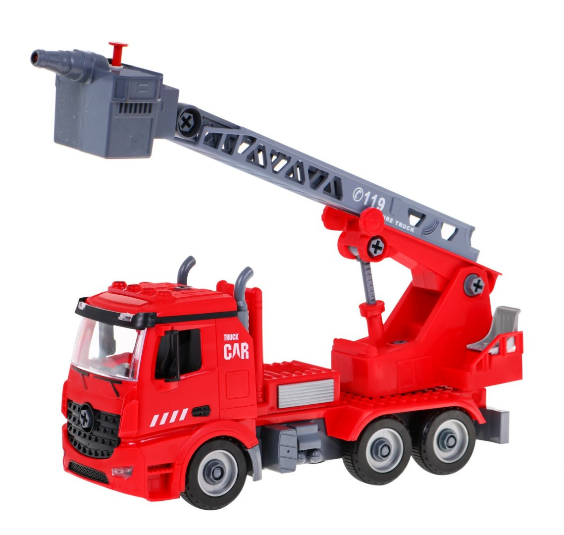 Pro chlapce, kteří sní o tom, že se stanou hasičem, máme vynikající sadu, hasičské auto a helmu 2 v 1. Hračka je určena pro děti od tří let. Sestavte hasičské vozidlo ze stavebních dílů, šrouby a nářadí jsou součástí balení. Vozík má odnímatelný, výsuvný a o 180 stupňů otočný výtah s košem nebo výsuvný a otočný žebřík zakončený vodním dělem, které opravdu funguje.