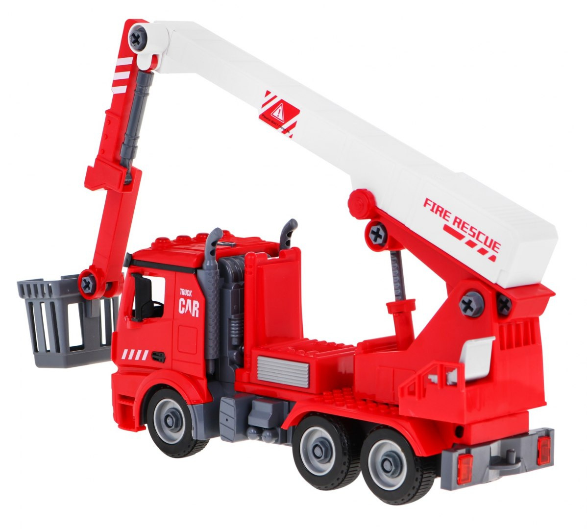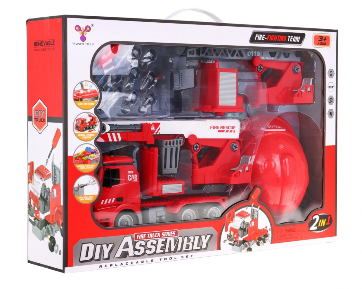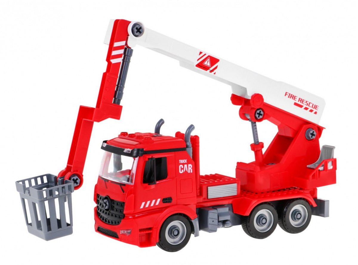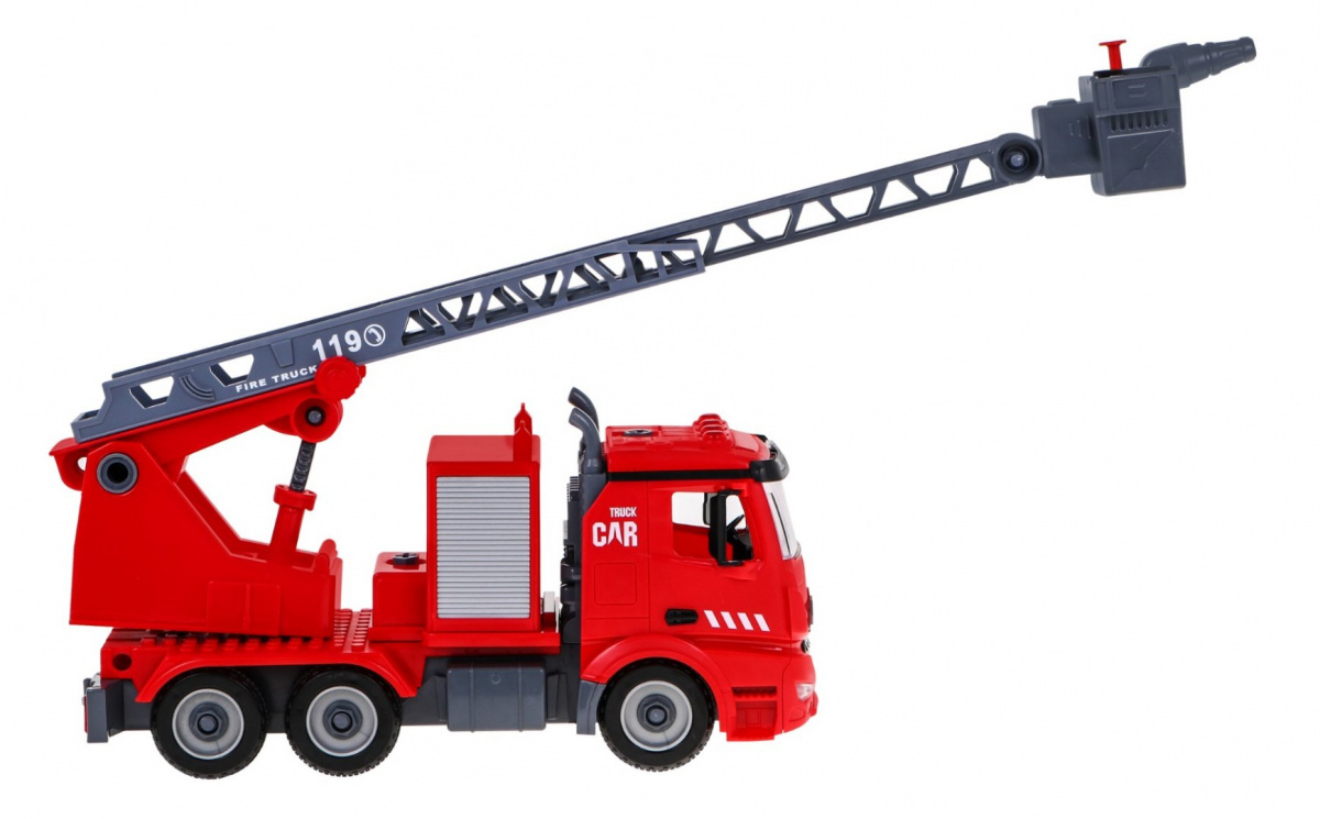 Pro chlapce, kteří sní o tom, že se stanou hasičem, máme vynikající sadu, hasičské auto a helmu 2 v 1. Hračka je určena pro děti od tří let. Sestavte hasičské vozidlo ze stavebních dílů, šrouby a nářadí jsou součástí balení. Vozík má odnímatelný, výsuvný a o 180 stupňů otočný výtah s košem nebo výsuvný a otočný žebřík zakončený vodním dělem, které opravdu funguje.