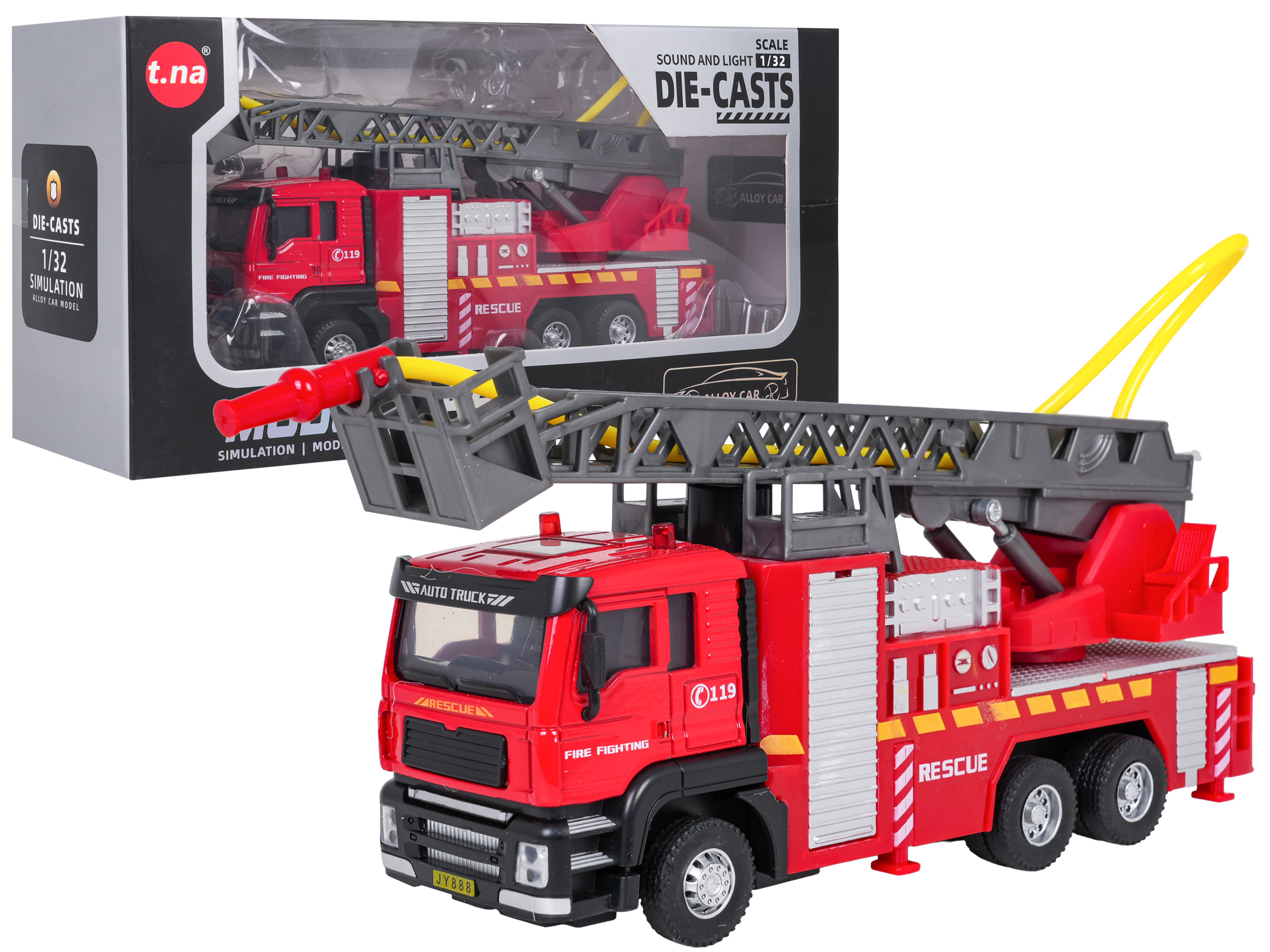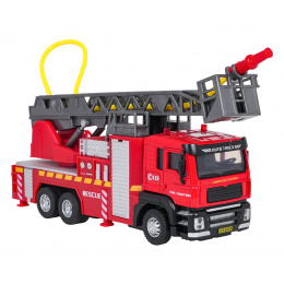 Interaktivní hasičský vůz, vyrobený v měřítku 1:32 s funkcí vody, světla a zvuku pro děti od tří let. Chránič byl vyroben z plastu nejvyšší kvality v živých barvách. Má gumové pneumatiky, které dobře drží na povrchu, a pohon Pull Back. Po stisknutí horní části kabiny vozidla uslyšíme zvuky charakteristické pro hasičský vůz a na střeše budou blikat světla. Žebřík hasičského vozu můžeme zvedat a spouštět a vysouvat dopředu (manuálně). Po naplnění nádržky umístěné u kabiny vozidla vodou a stisknutí pumpičky bude z hadice vytékat voda. Hračka je napájena bateriemi typu 3 x AG13 (v balení).