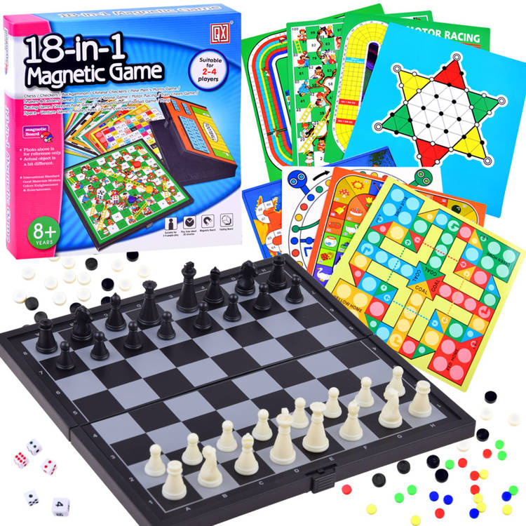 Magnetická šachovnice slouží také jako box na pěšce a kostky. Jedním z nejúčinnějších způsobů, jak u dětí rozvíjet mezilidské vztahy, je hrát s blízkými různé hry. Stolní, karetní a jiné hry rozšiřují inteligenci, schopnost efektivně mluvit a sdělovat ostatním své záměry a přání. Hry jsou skvělým způsobem, jak se společně pobavit se svými blízkými. Prostřednictvím těchto her mohou děti trávit více času se svými rodiči.