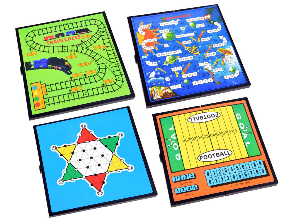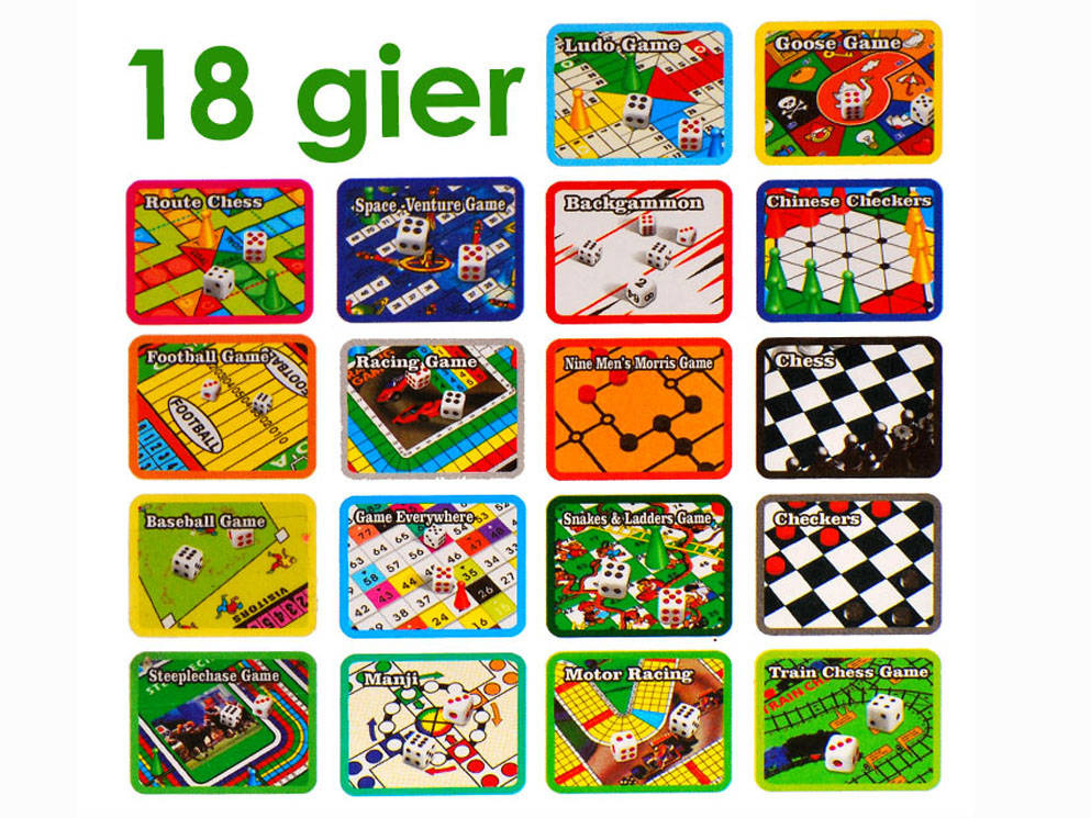 Sada 18 her: Překážkový běh, Devět Morrisových mužů, Všude, Fotbal, Husa, Manji Chess Route, Space - venture, Šachy - vlak, Baseball, Ludo, Šachy, Triktrak, Dáma, Čínská dáma, Hadi a žebříky, Závod, Závod F1