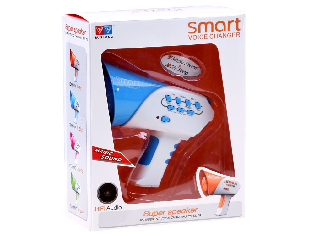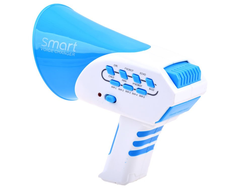 Hlasový modulátor je skvělé zařízení, se kterým si děti mohou hrát. Zabaví vás na dlouhé hodiny. Má 12 různých fantastických efektů: 7 režimů změny hlasu a 5 zvukových režimů. Používání je velmi snadné, stačí vybrat možnost a mluvit do náustku. Několik základních režimů změny hlasu a hudebních verzí lze kombinovat a vytvářet tak další zábavné zvukové efekty. Přístroj je vyroben výhradně z plastu s důrazem na detail a díky svým malým rozměrům padne do každé ruky.