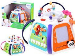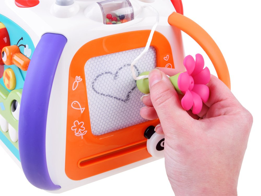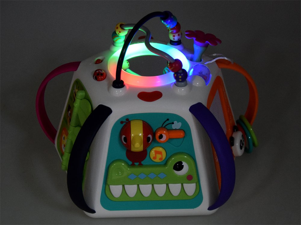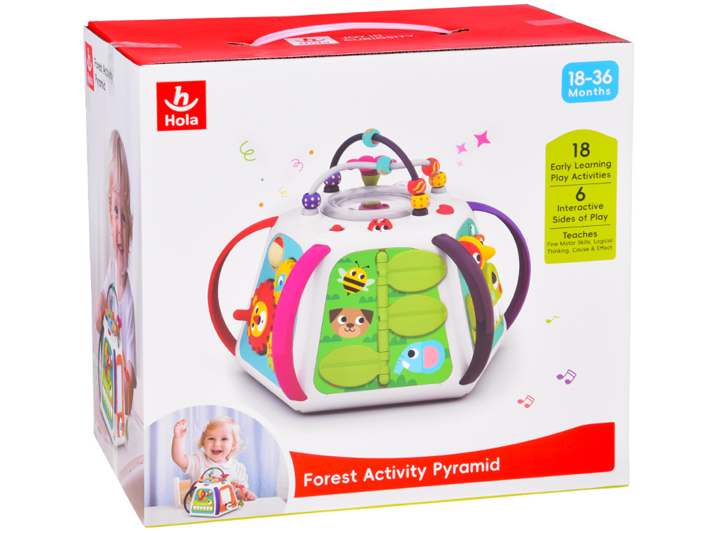 Nová verze slavného multiboxu Hola je určena pro děti od 18 měsíců. Interaktivní hračka s pěti úrovněmi pro zajímavé, vzdělávací hry a vrškem s labyrintem, barevnými korálky pro procvičování malých ručiček.