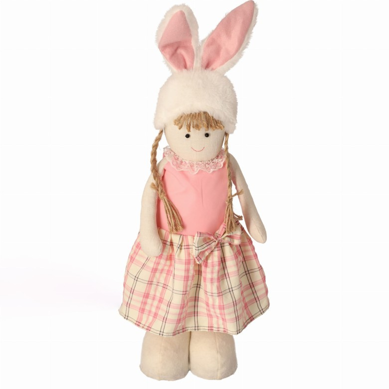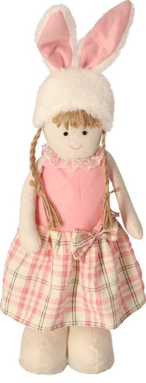 Výška 75 cm z ní činí impozantní ozdobu, která přitahuje pohledy a přináší radostnou atmosféru. Holčička je oblečená v pastelových, jarních šatech a má charakteristická, dlouhá zaječí ouška, což jí dodává sváteční, zábavný vzhled. Teleskopické nohy umožňují nastavení výšky, díky čemuž ji snadno přizpůsobíte svému interiéru. Ideální k umístění v obývacím pokoji, na velikonočním stole nebo v jiných částech domu, vytvářející nezapomenutelnou atmosféru jara a Velikonoc.