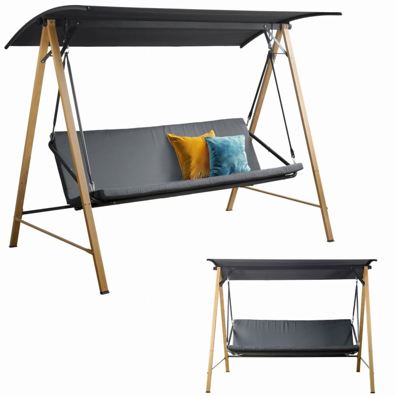 Pohodlné místo pro tři osoby – šířka 223 cm zajišťuje volnost a komfort Měkké, přizpůsobené polštáře v sadě – pohodlí při sezení a relaxaci Pevný, práškově lakovaný ocelový rám – stabilita a trvanlivost na léta Nastavitelná sluneční stříška – ochrana před sluncem a lehkým deštěm již nebudou překážkou Plynulý pohyb houpání – uvolnění pro tělo a mysl Moderní design – hodí se do každého zahradního uspořádání