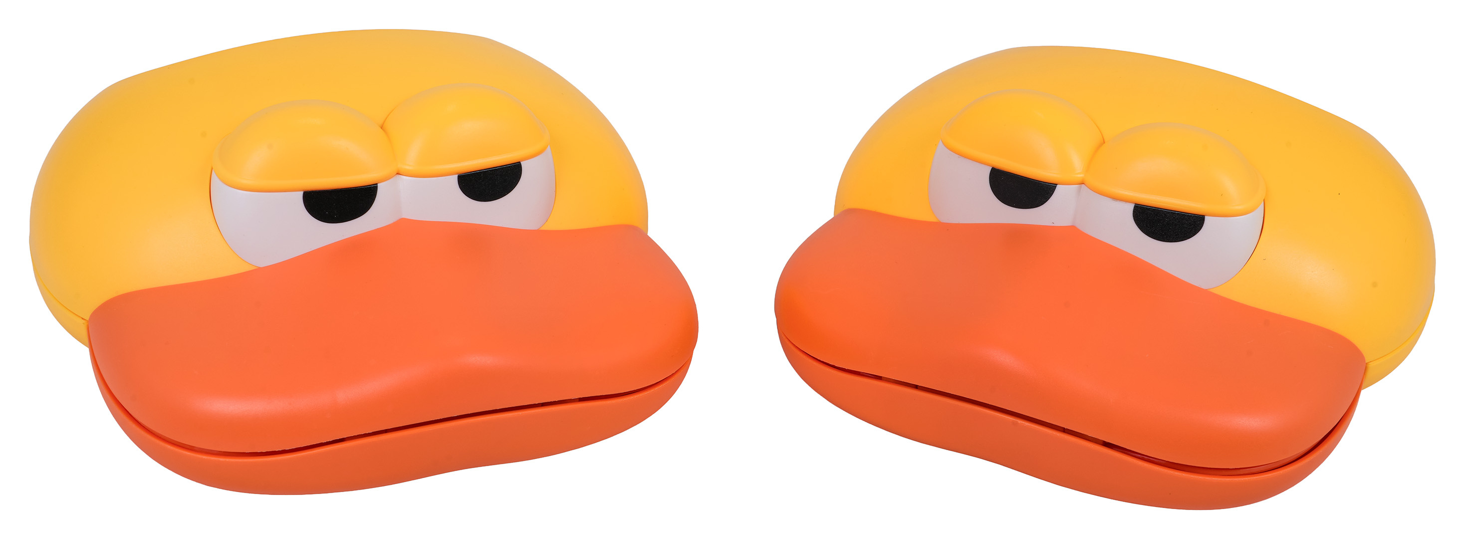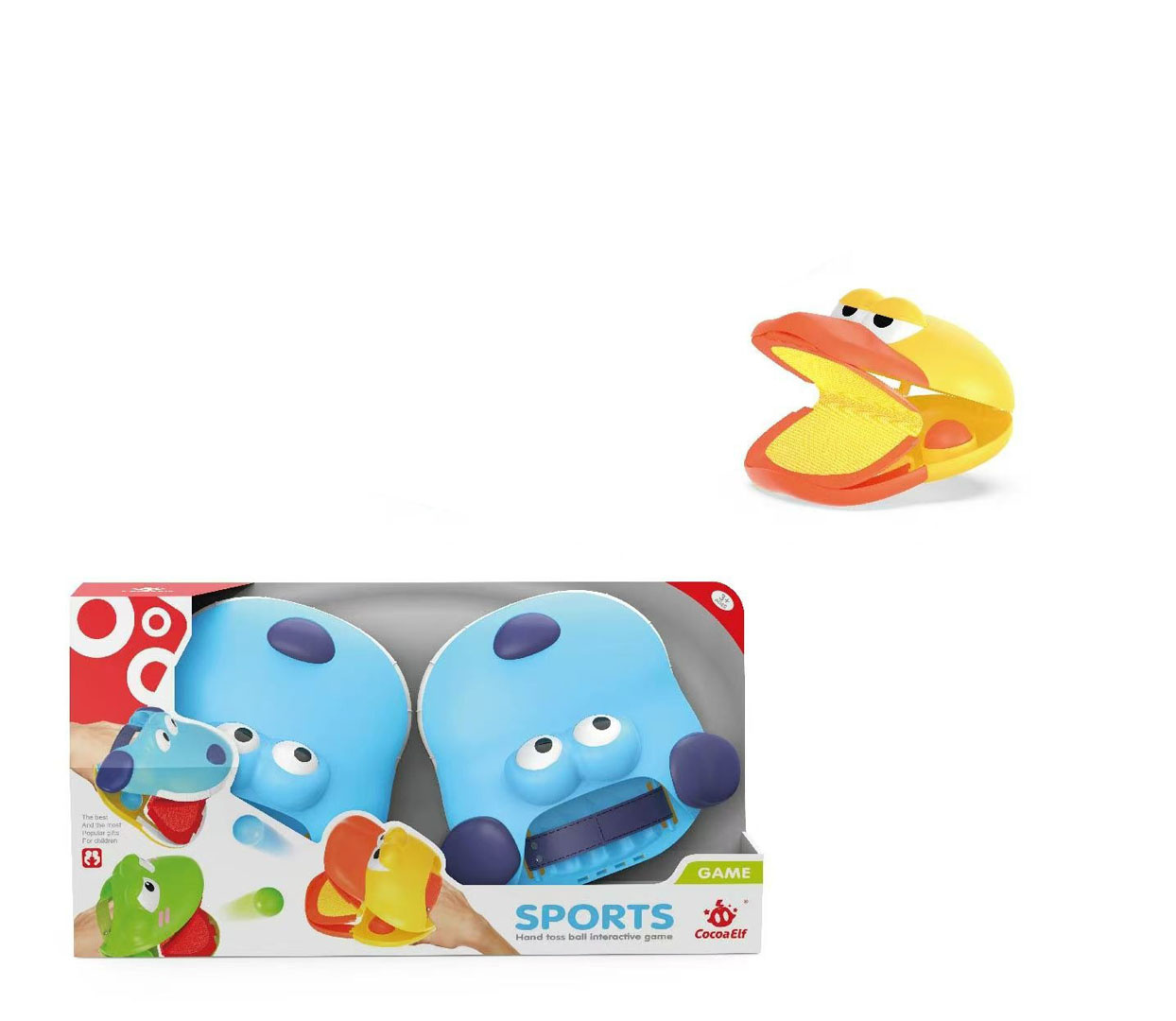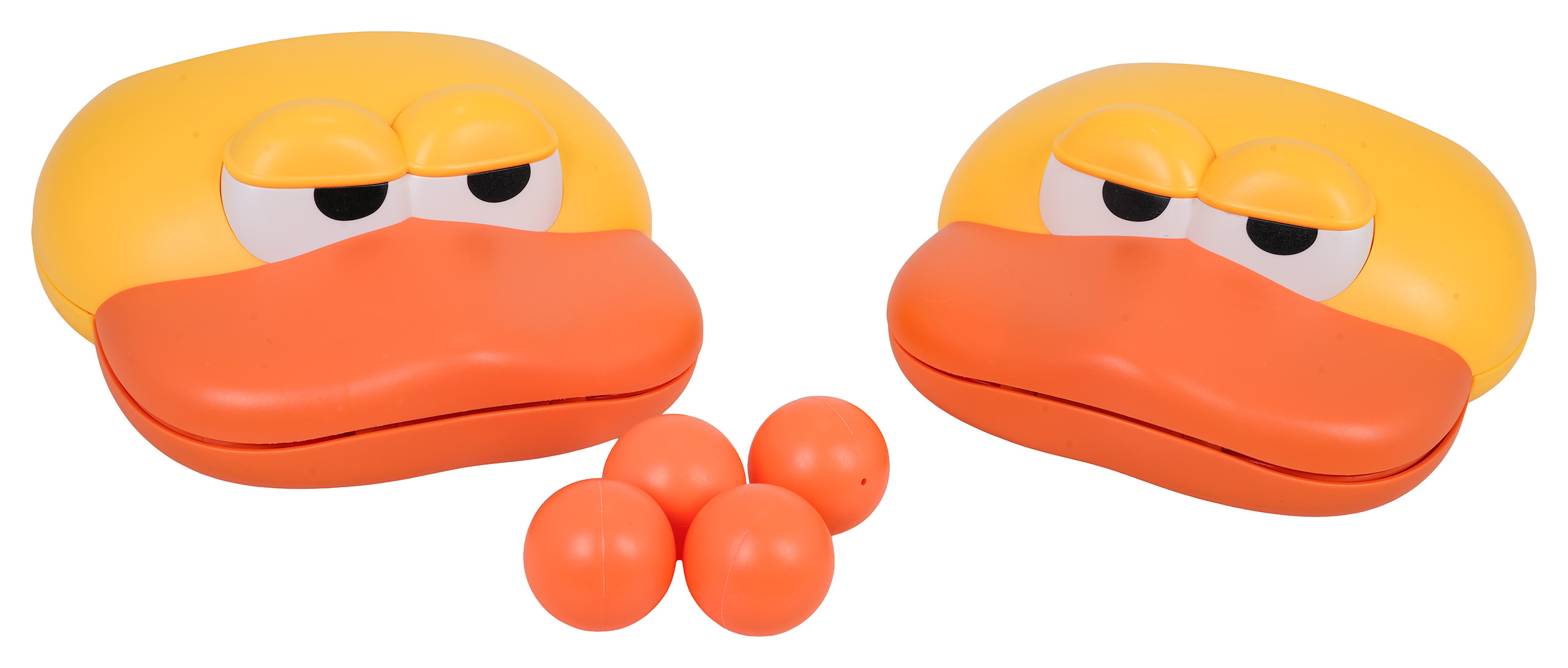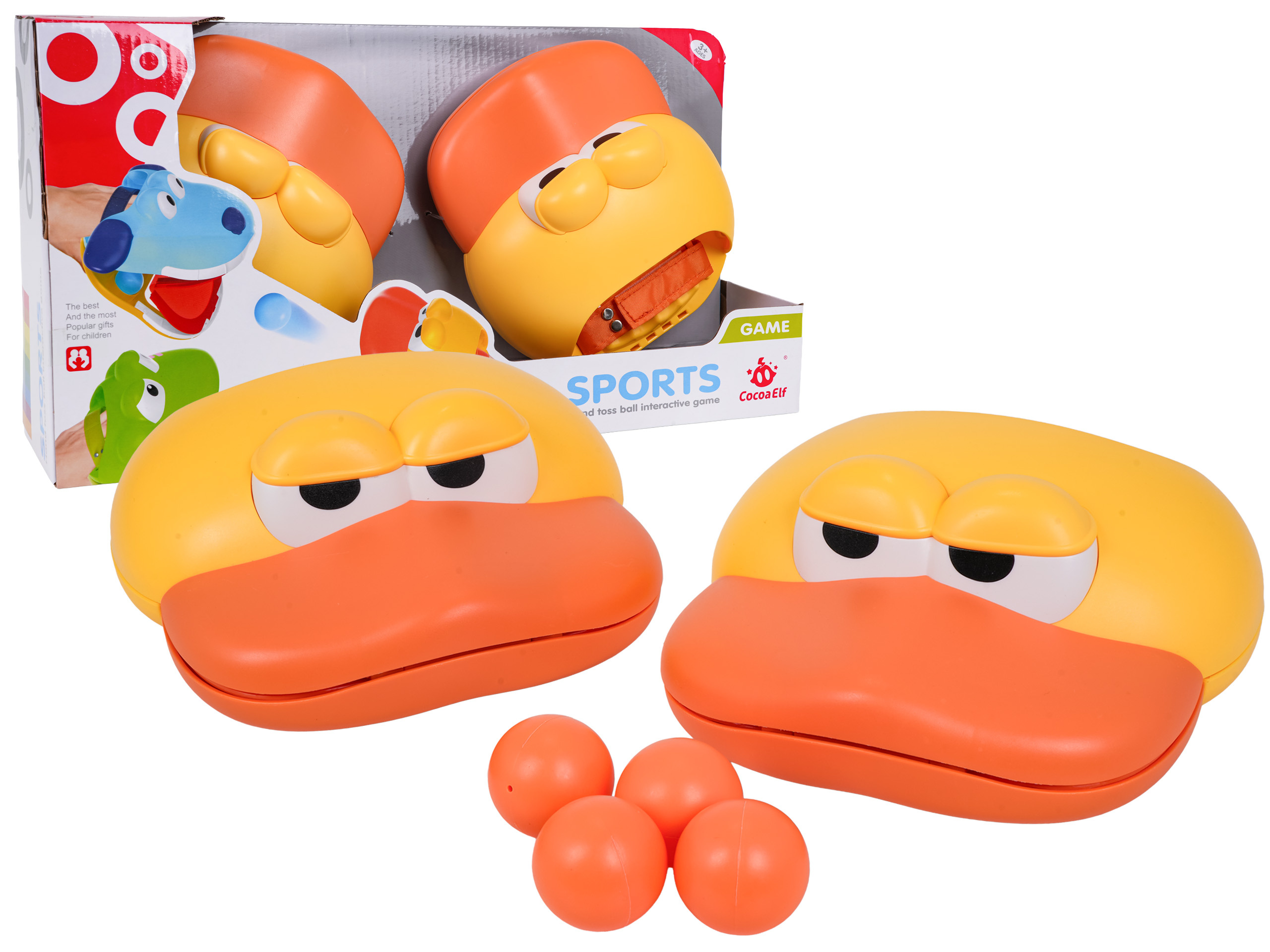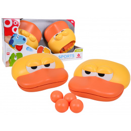 Hra na obratnost, sportovní s pálkami ve tvaru kačenky a míčky pro děti starší tří let. Sada je vyrobena z materiálů nejvyšší kvality v živých barvách a obsahuje dvě chňapky ve tvaru kačenky a 4 míčky. Hra je ideální pro aktivní trávení času na čerstvém vzduchu. Odblokujeme bílý knoflík a otevřeme zobák kačenky. Umístíme míček na jazyk kačenky, zavřeme zobák a poté, co vložíme ruku do tlapky, rychle ho otevřeme a vyhodíme míček. Kachnička má nastavitelné pásky na suchý zip, aby byla ruka dobře zajištěna a nesklouzávala.