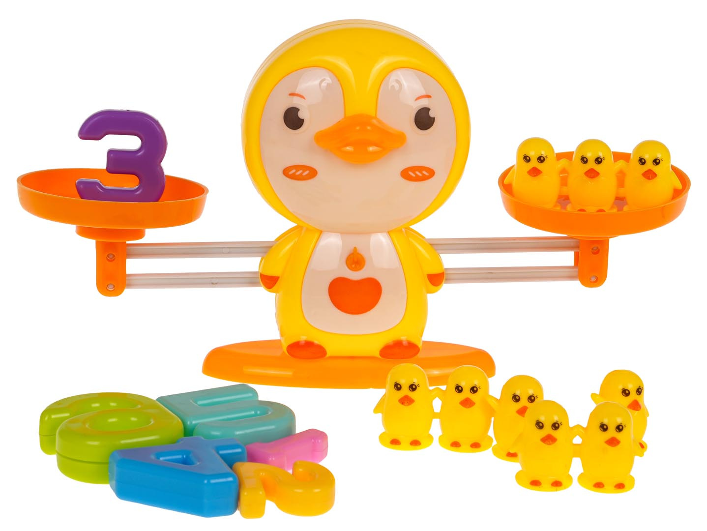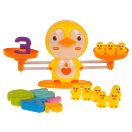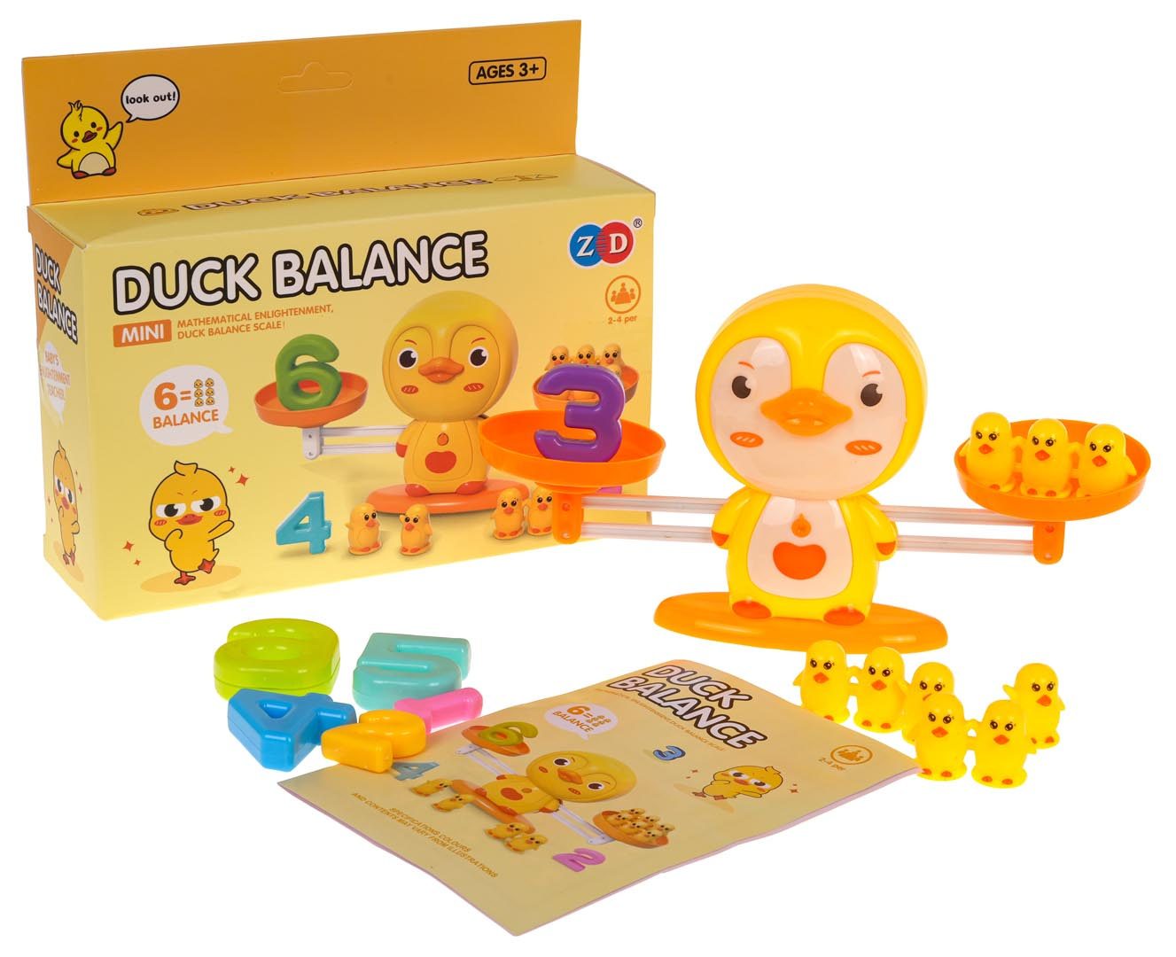Hra zručnosti Váha Balancující Kachna pro děti od 3 let. Tato fascinující hra poskytne vašemu dítěti dlouhé hodiny vzdělávací zábavy. Hra se skládá z váhové váhy s roztomilou kachnou uprostřed, závaží ve tvaru malých kachen a číslic a karty s matematickými úkoly. Na jednu stranu váhy položíme číslice a na druhou odpovídající počet kachen, aby byla zachována rovnováha. Hra rozvíjí dovednosti sčítání, logické myšlení, představivost a kreativitu. Dítě se seznamuje se základy matematiky a fyziky.