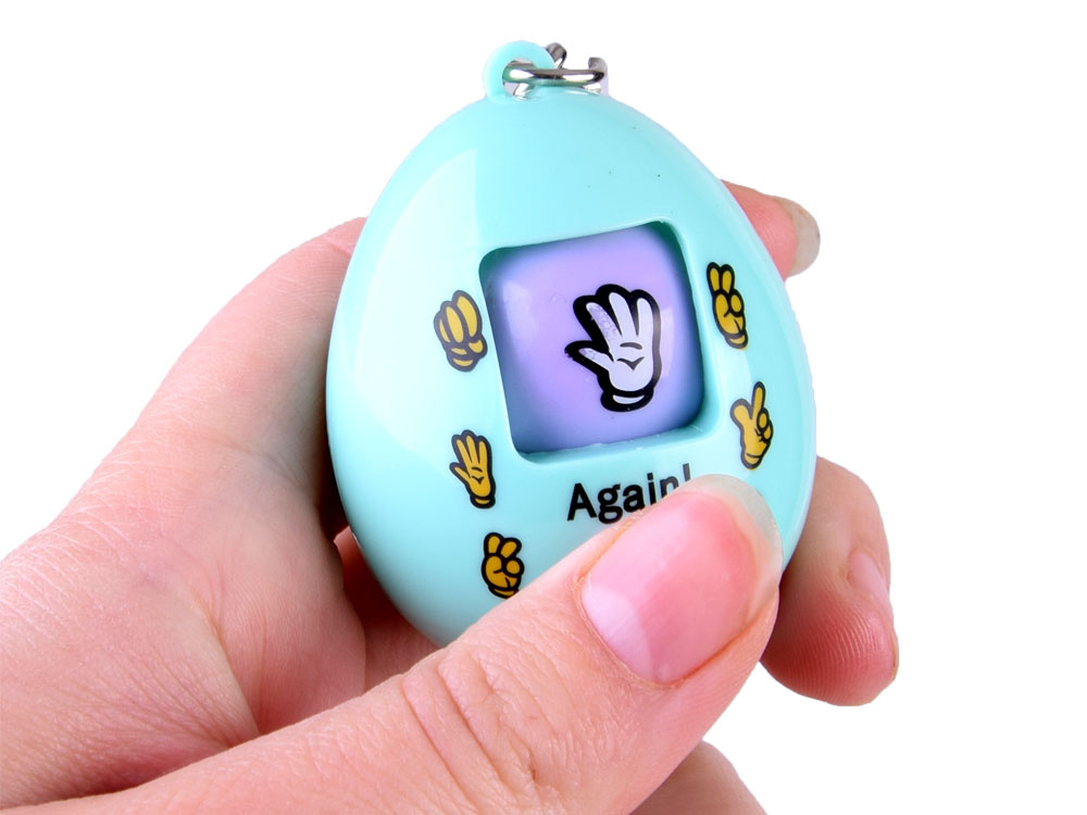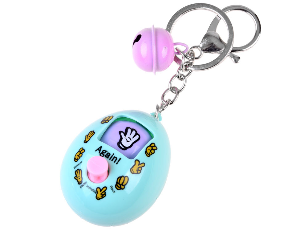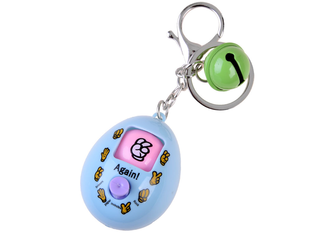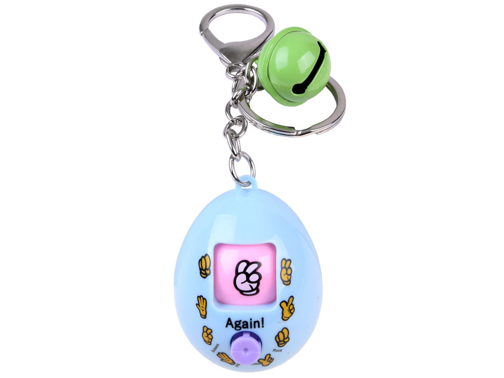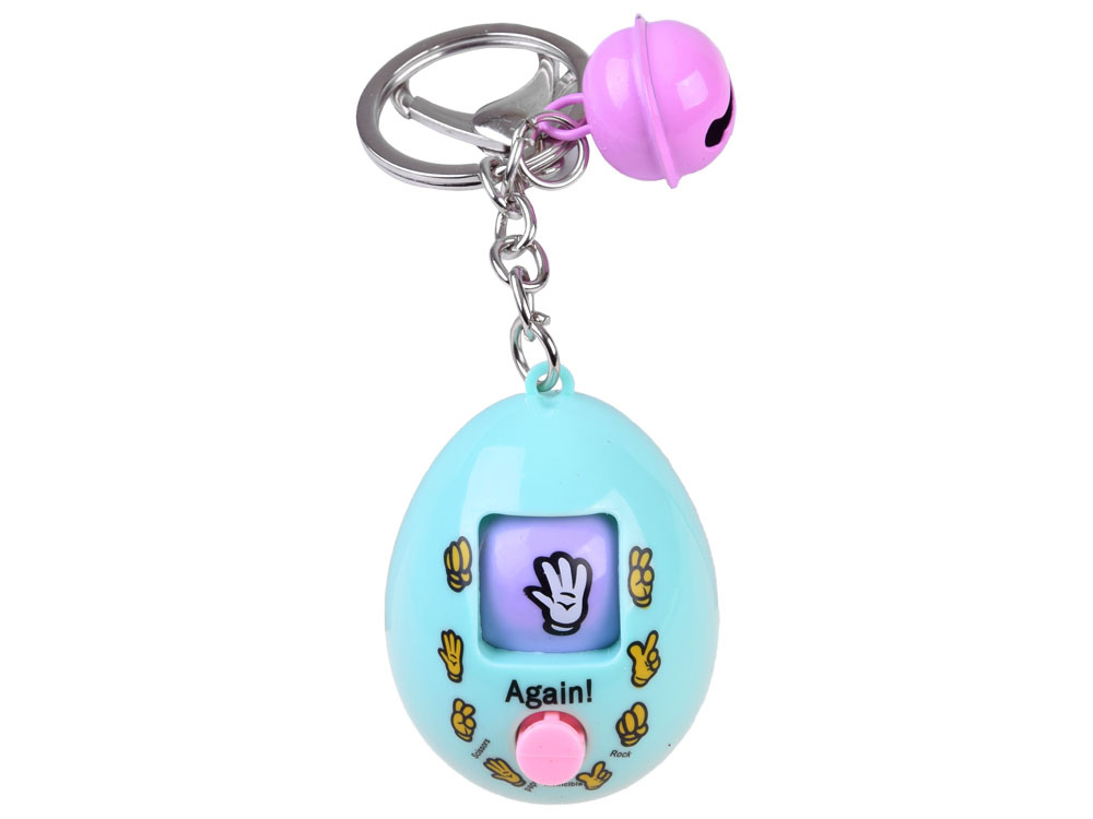 Barevný kroužek na klíče ve tvaru vajíčka s hrou se skvěle hodí na školní batohy a kabelky. V přívěsku je zabudována oblíbená hra "kámen, nůžky, papír", stačí stisknout tlačítko a otáčející se tlapka nám ukáže daný znak. Tento skvělý přívěsek se vám bude hodit při čekání na autobus nebo při sázce s kamarádem.