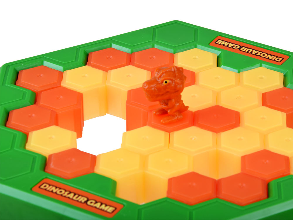 Před hrou položte kostky na formu a poté nasaďte nohy, abyste vytvořili mini stůl. Nakonec umístěte figurku dinosaura na požadované místo na hrací ploše. Zábava může začít!