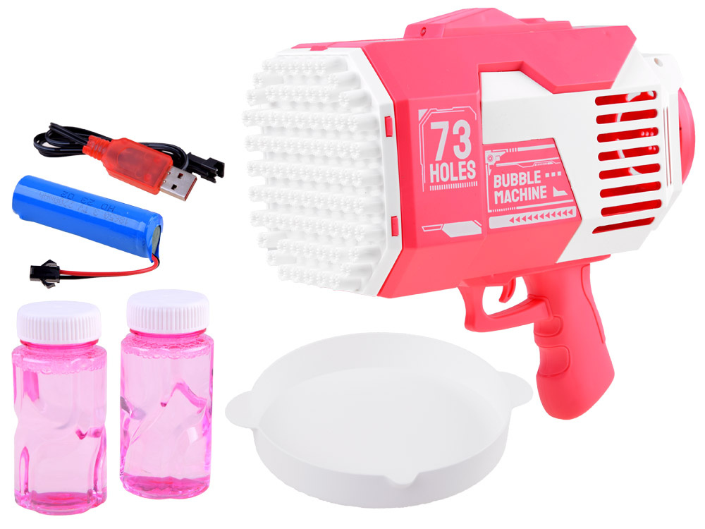 Pistole na mýdlové bubliny se 73 otvory poskytne kouzelnou duhovou zábavu každému dítěti. Hračka je napájena dobíjecí baterií USB, snadno se používá a poskytne spoustu kreativní zábavy. Nesčetné duhové bubliny vypouštěné z pistole vytvoří kouzelnou krajinu na zahradě, dětském hřišti, svatební hostině, při grilování apod. Skvělý nápad, jak zpestřit dětskou narozeninovou oslavu, svatební tanec s malými dětmi, při hře venku.