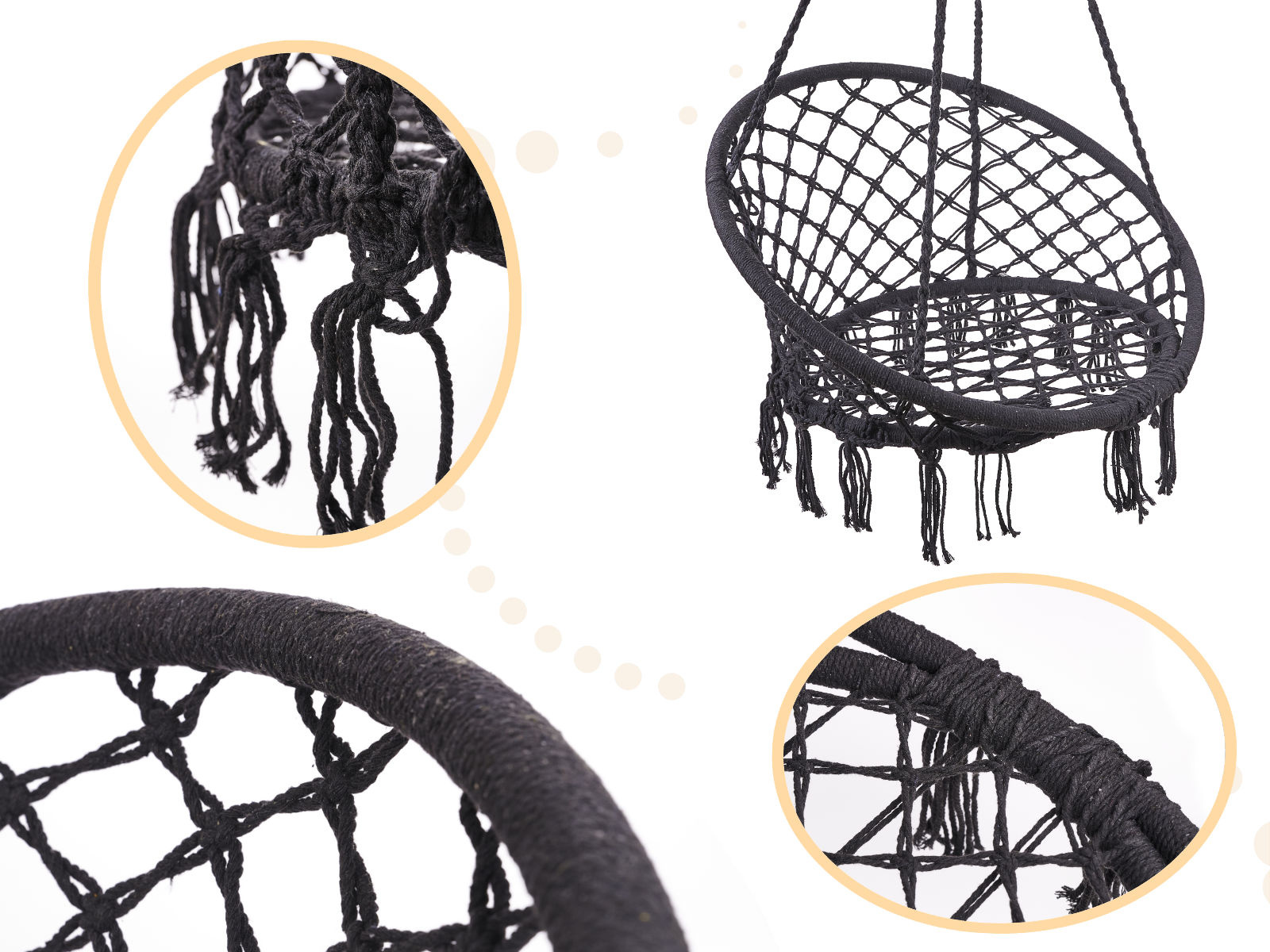 Pevná lana se speciálním výpletem a kovový rám zajistí bezpečnost při odpočinku. Můžete si být jisti, že houpačka bude sloužit dlouho. Hnízdo je cestou k domácímu hřišti pro děti a relaxaci pro dospělé. Určitě pobaví každého v domě.