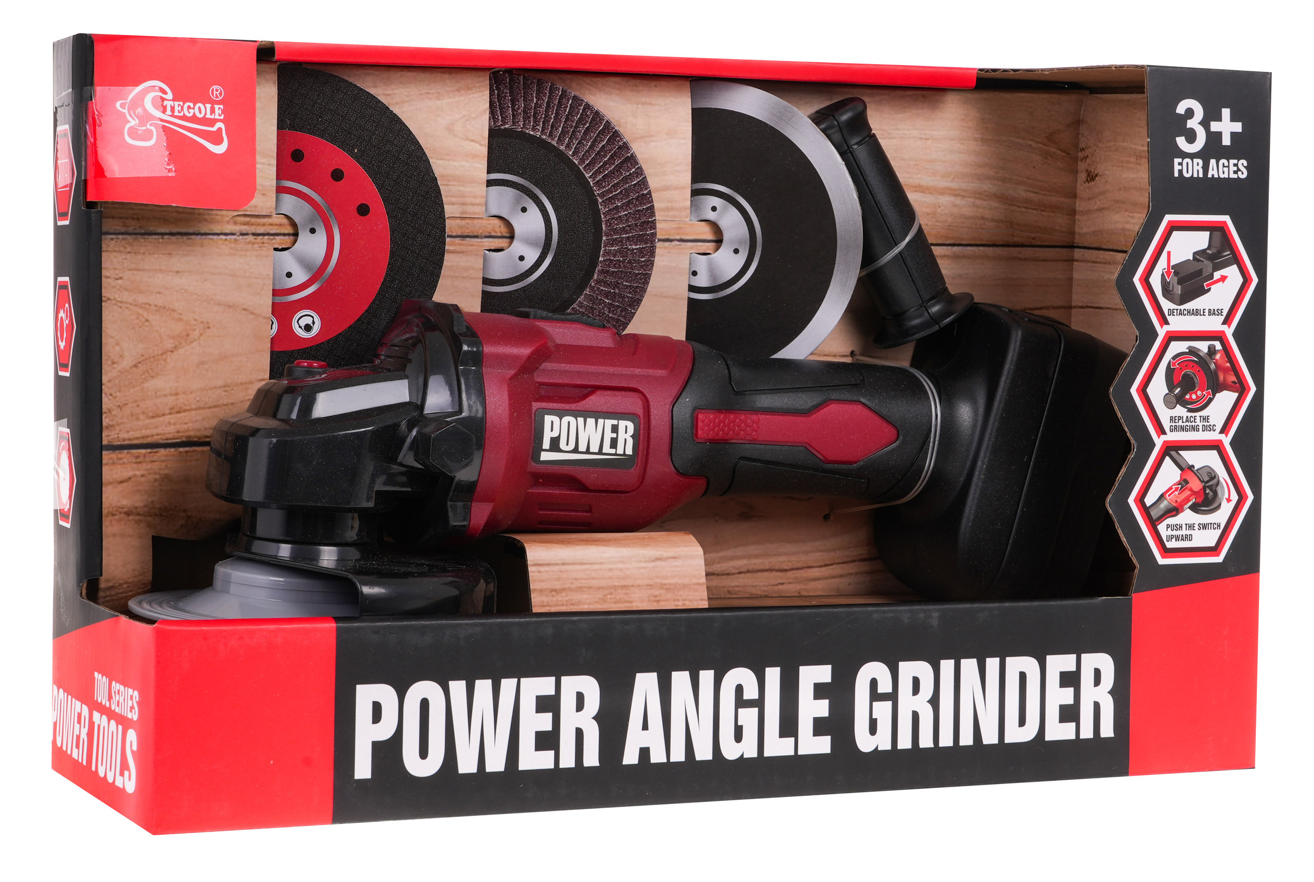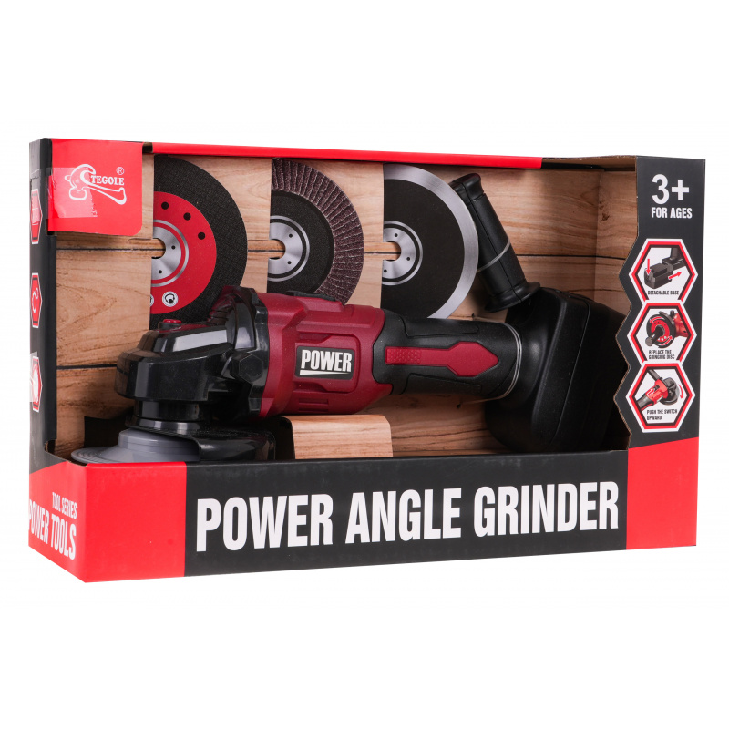 | Bateriová bruska pro děti od tří let. Mlýnek je klamně podobný skutečnému a všechny jeho funkce jsou pro dítě zcela bezpečné. Když se dítě dotkne ciferníku rukou, ciferník se přestane otáčet. Součástí jsou také tři vyměnitelné výkresy ciferníků s různou povrchovou úpravou. Po stisknutí černého tlačítka na horní straně hračky začne mlýnek otáčet kotoučem a vydávat zvuky mletí. Bruska má odnímatelnou baterii a rukojeť, kterou lze nosit na pravé nebo levé straně. Hračka je napájena 2 bateriemi AA 1,5 V. Baterie nejsou součástí dodávky. | |