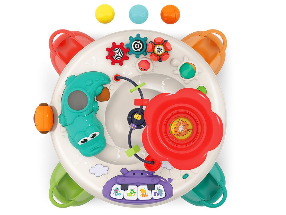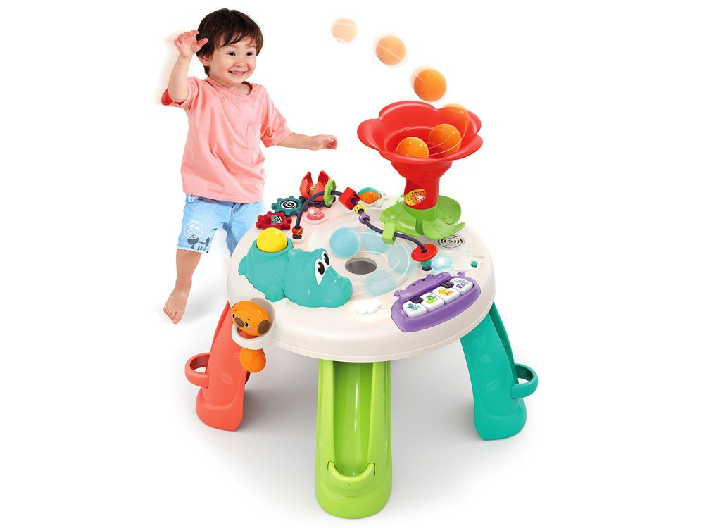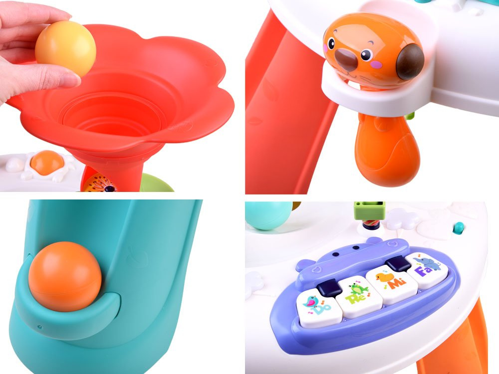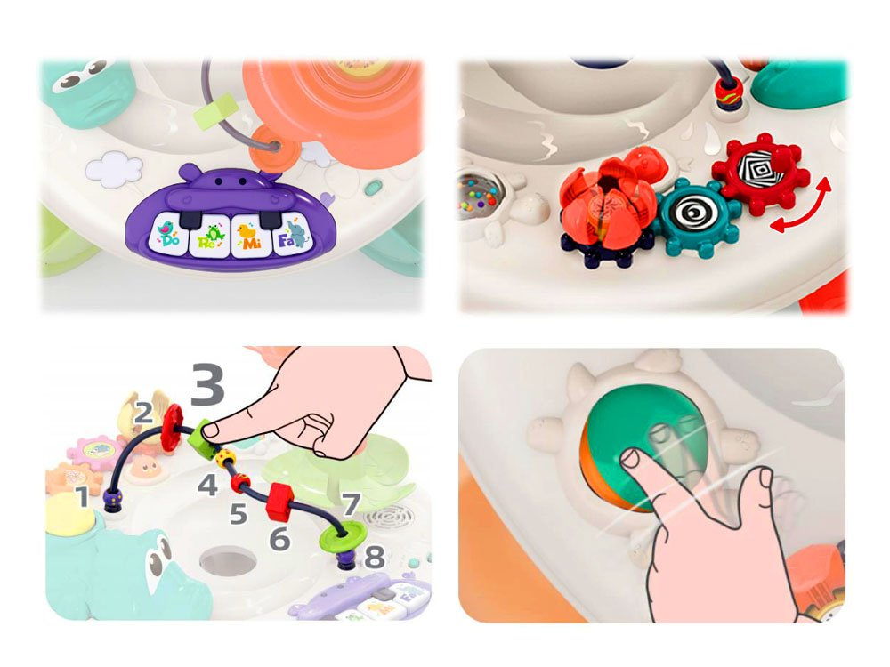 Hra s takovým interaktivním stolem bude velmi vzrušující a zábavná. Hračka je celá vyrobena z kvalitního plastu v atraktivních barvách, zvuky jsou velmi příjemné. Výhodou vzdělávacích hraček je, že si batolata hrou prohlubují svou představivost, učí se umění soustředit se, rozvíjejí své manuální dovednosti a zjišťují, jaké jsou jejich schopnosti. Tento interaktivní stůl splní výše uvedené a navíc poskytne vašemu děťátku spoustu důvodů k zábavě!