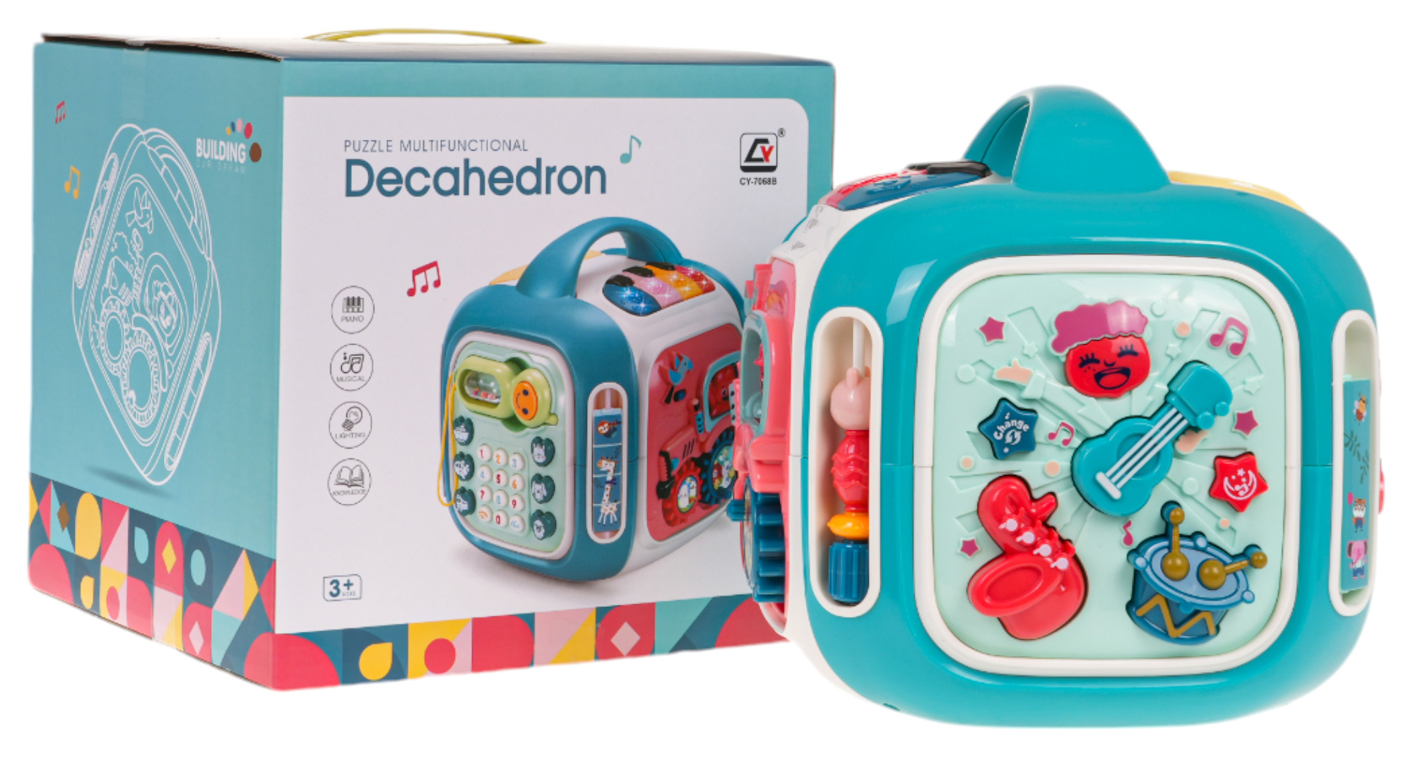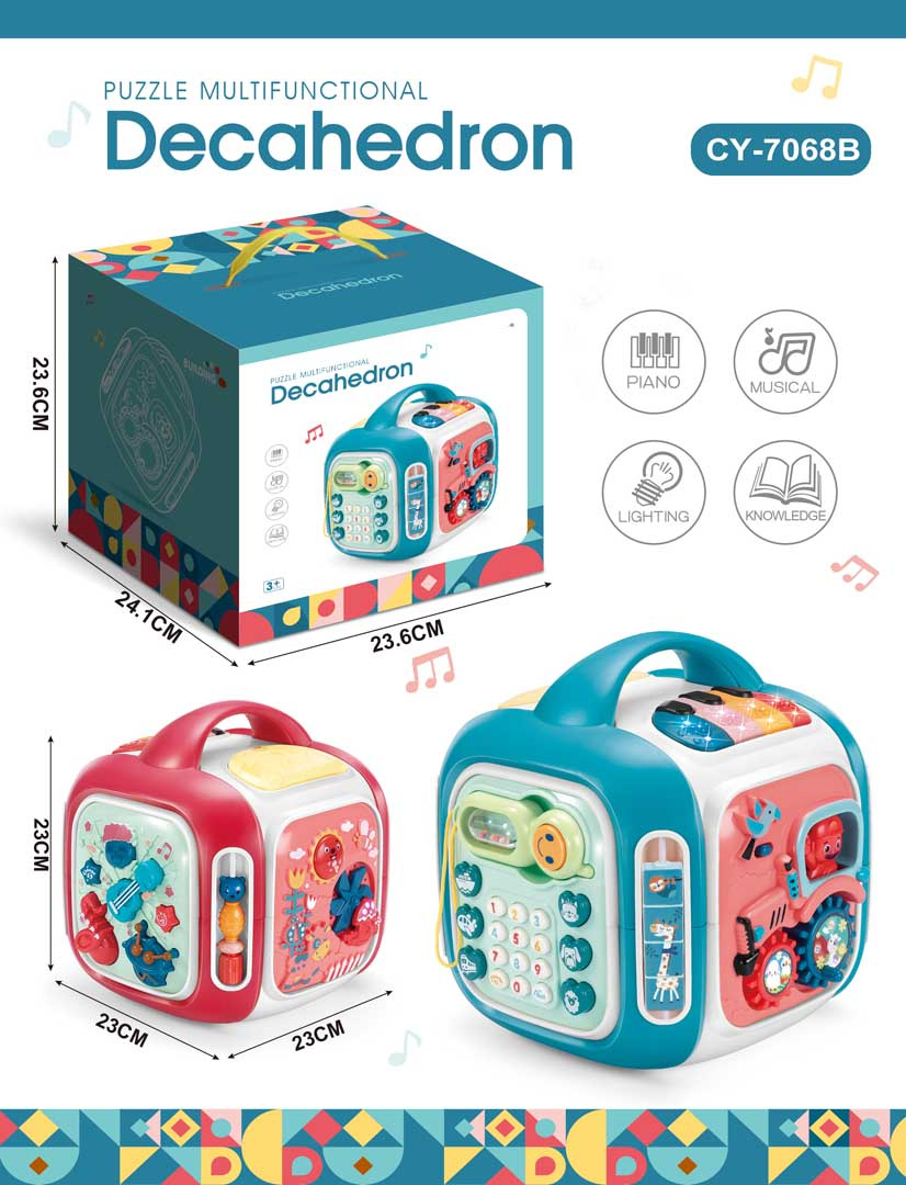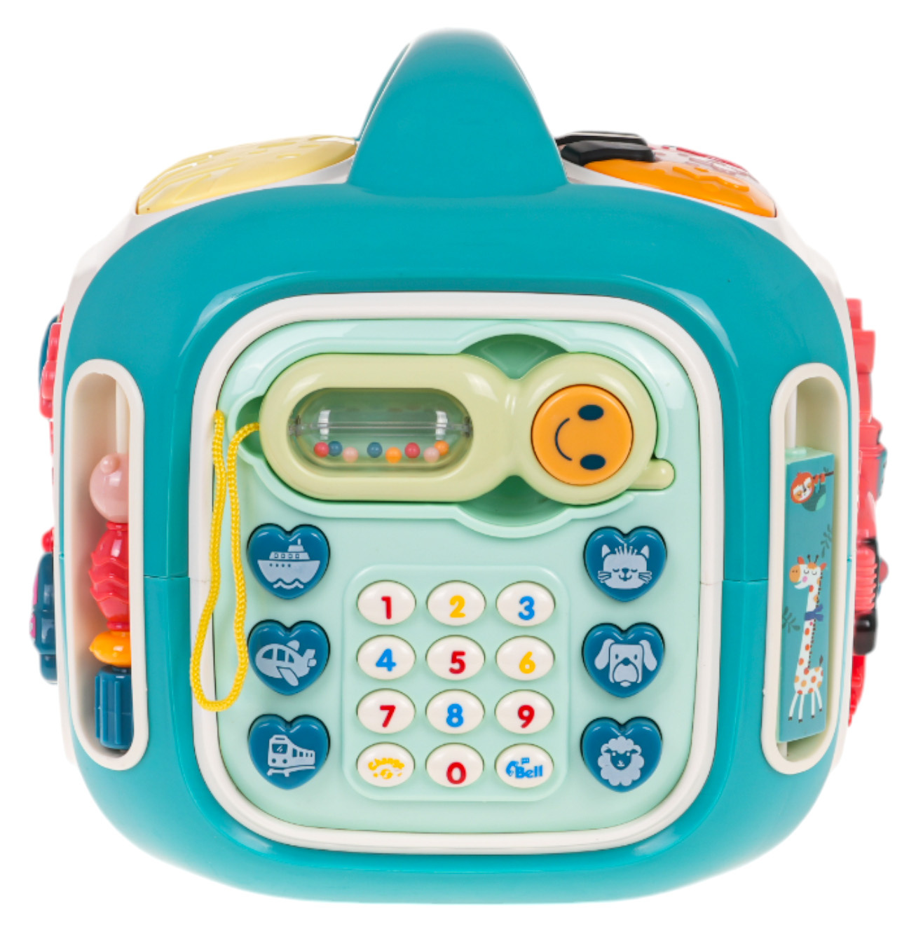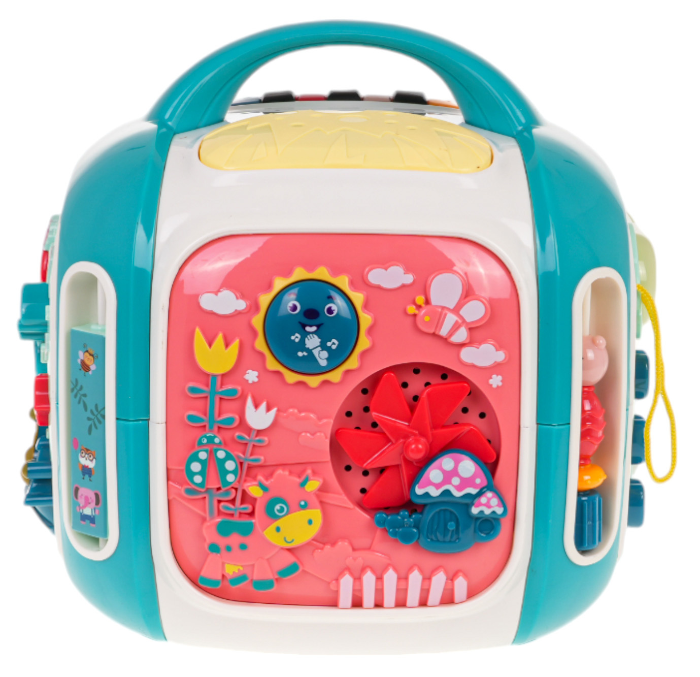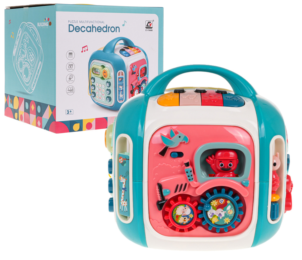 Interaktivní box se zvukovými a světelnými efekty pro děti od 3 let. Každá stěna boxu poskytne dítěti spoustu zábavy a interaktivní hry. Různorodé zvukové a světelné efekty a bohatství barev přitáhnou pozornost dítěte a povzbudí ho ke hře. Hračka je napájena bateriemi typu 3 x AA 1,5 V (nejsou součástí balení).
