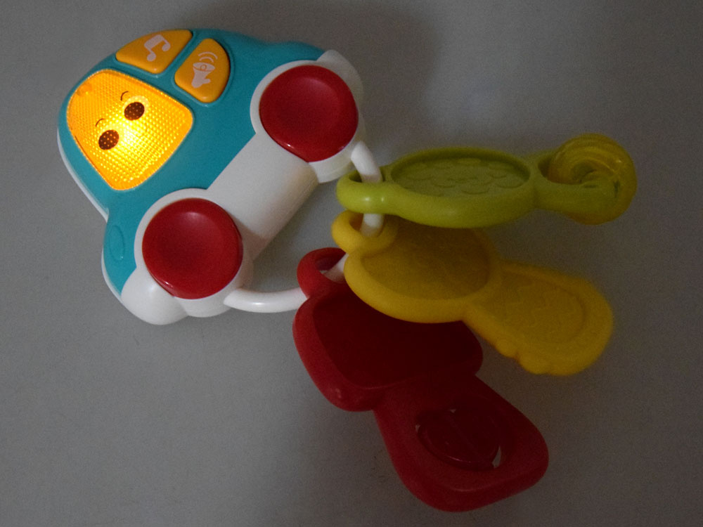 - žlutý klíč je vyroben z měkkého plastu a je ideální pro žvýkání, zatímco výstupky masírují bolavé dásně,