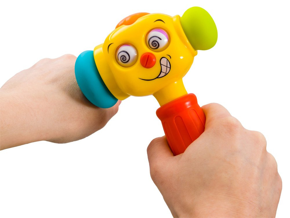 Hračka určená pro nejmenší děti, které rády berou vše, co jim přijde pod ruku. Smějící se kladívko se skvěle hodí jako hračka, která batole zaujme. děti rády mlátí předměty o jiné předměty, jen aby slyšely zvuk, a toto kladivo je pro takovou hru skvělé.