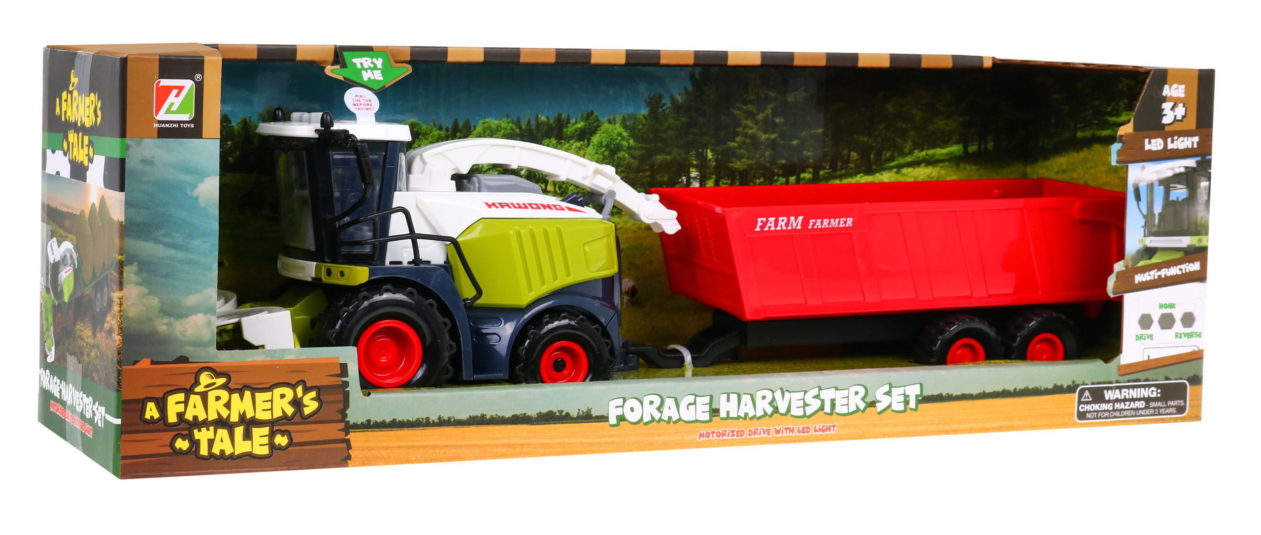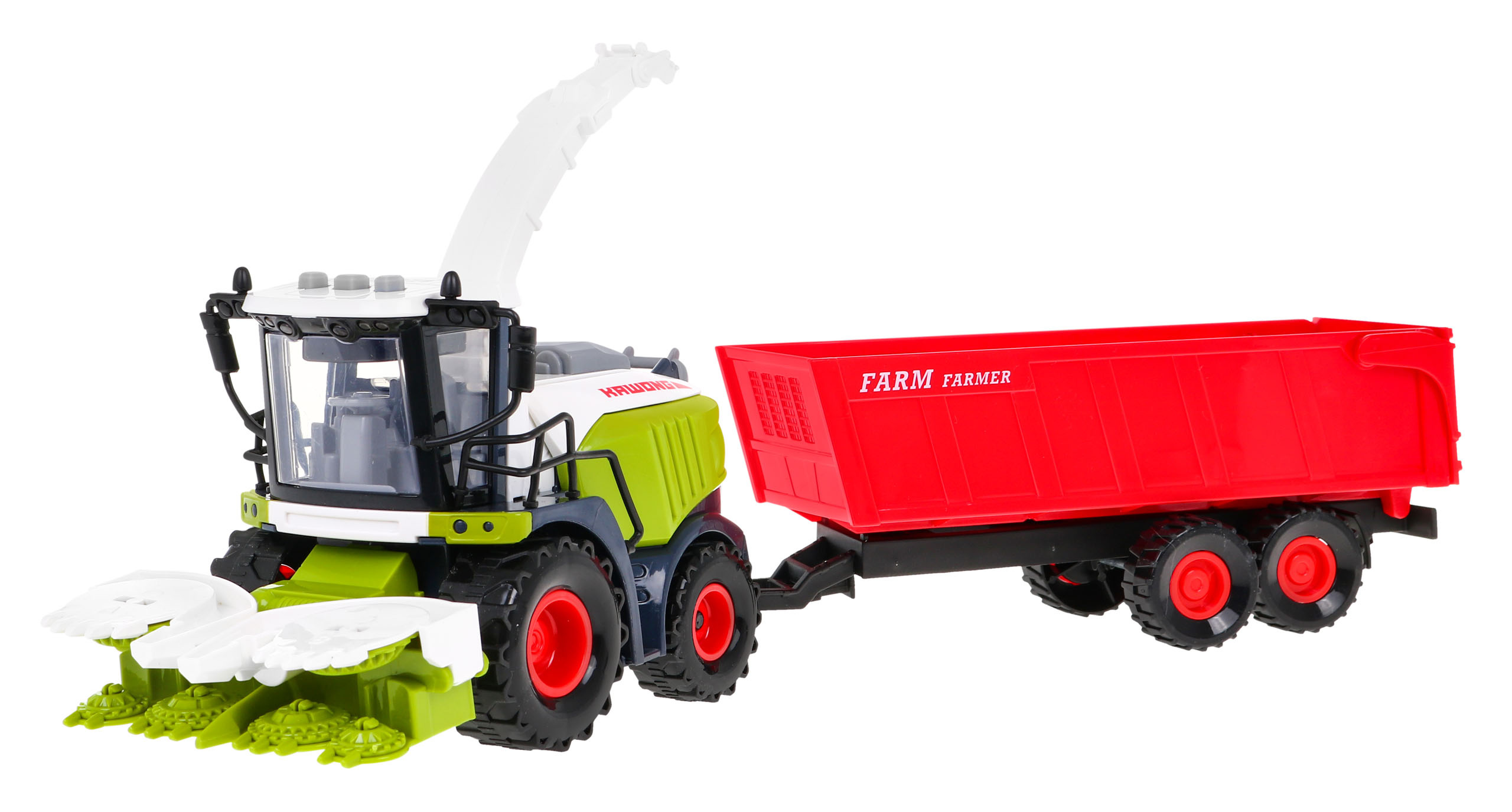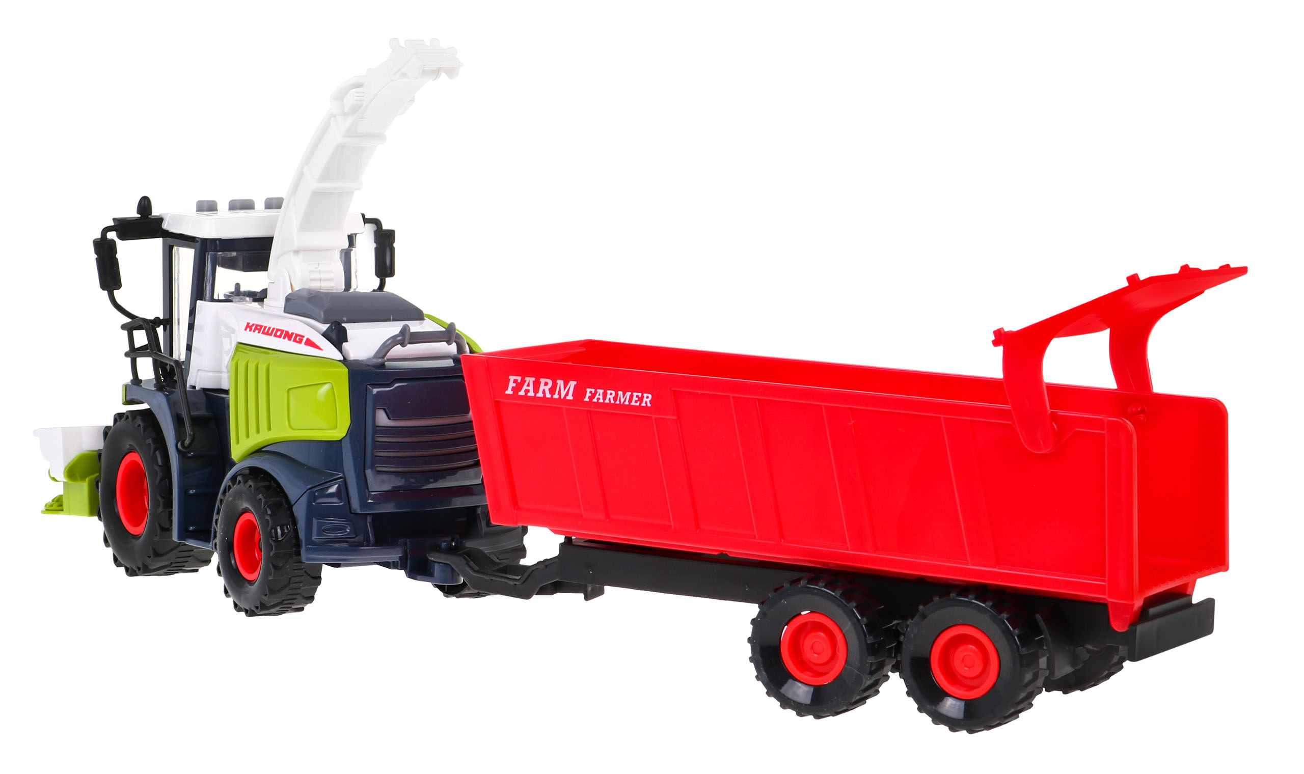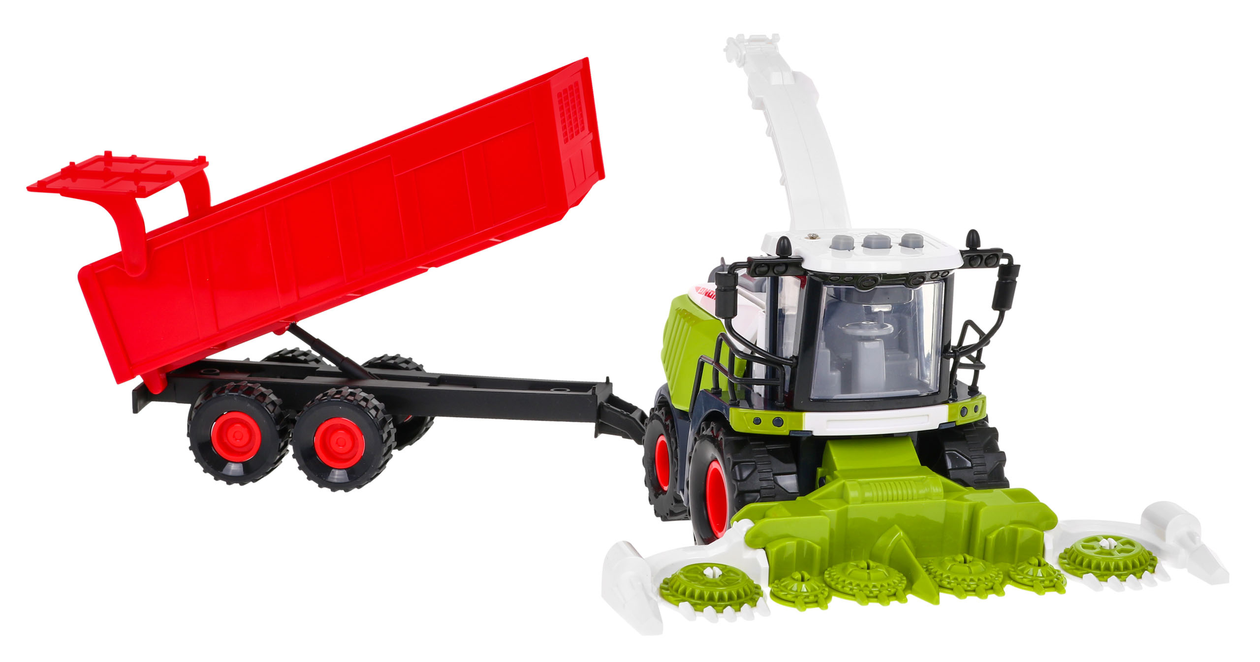Pevně konstruovaný interaktivní kombajn s pohonem a zvukovými a světelnými efekty je vhodný pro děti od 3 let. Hračka dokonale napodobuje skutečný kombajn, má 360° zvedací a otočnou výklopnou rouru a odnímatelný, zvedací a otevírací přívěs.