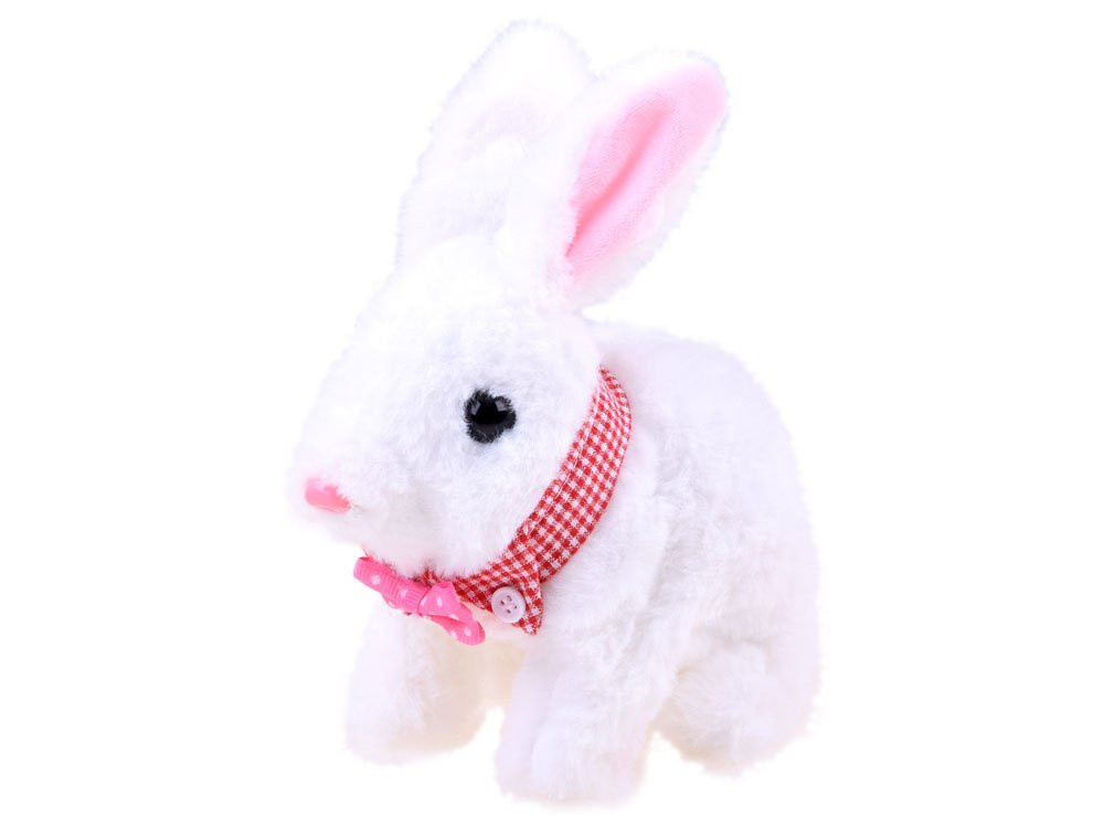 Interaktivní plyšový králík s doplňky si pravděpodobně získá srdce nejednoho dítěte. Rozkošné bílé koťátko s růžovýma ušima po vložení baterií poskakuje dopředu, legračně pohybuje čumáčkem a vydává zvuky králíčka. Králík je vybaven košíkem, ve kterém může pohodlně spát přikrytý dekou. Hračka poskytne každému dítěti spoustu pečující zábavy.