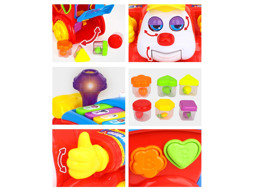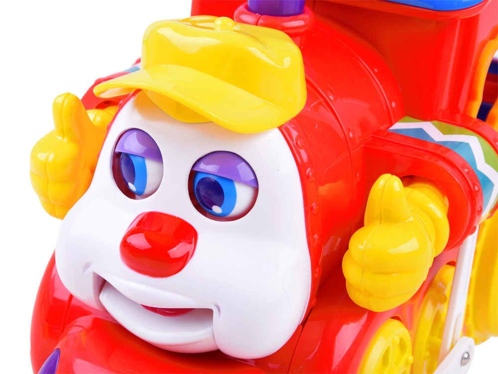po zapnutí hračka bliká světly na přední straně a na komíně, vydává zvuk hračkářského chvostu a sama jezdí tak, že mění dráhu, když narazí na překážku. Pohybuje očima, ústy, komínem a rukama. Po stisknutí komínu se hračka zastaví a dítě s ní může volně pohybovat pomocí rotujících koleček. Na horní straně lokomotivy jsou barevná tlačítka. Tlačítka označená ABC - a PIANINKO mají mnoho výukových funkcí. Každá část hračky má jinou hrací a vzdělávací sadu.