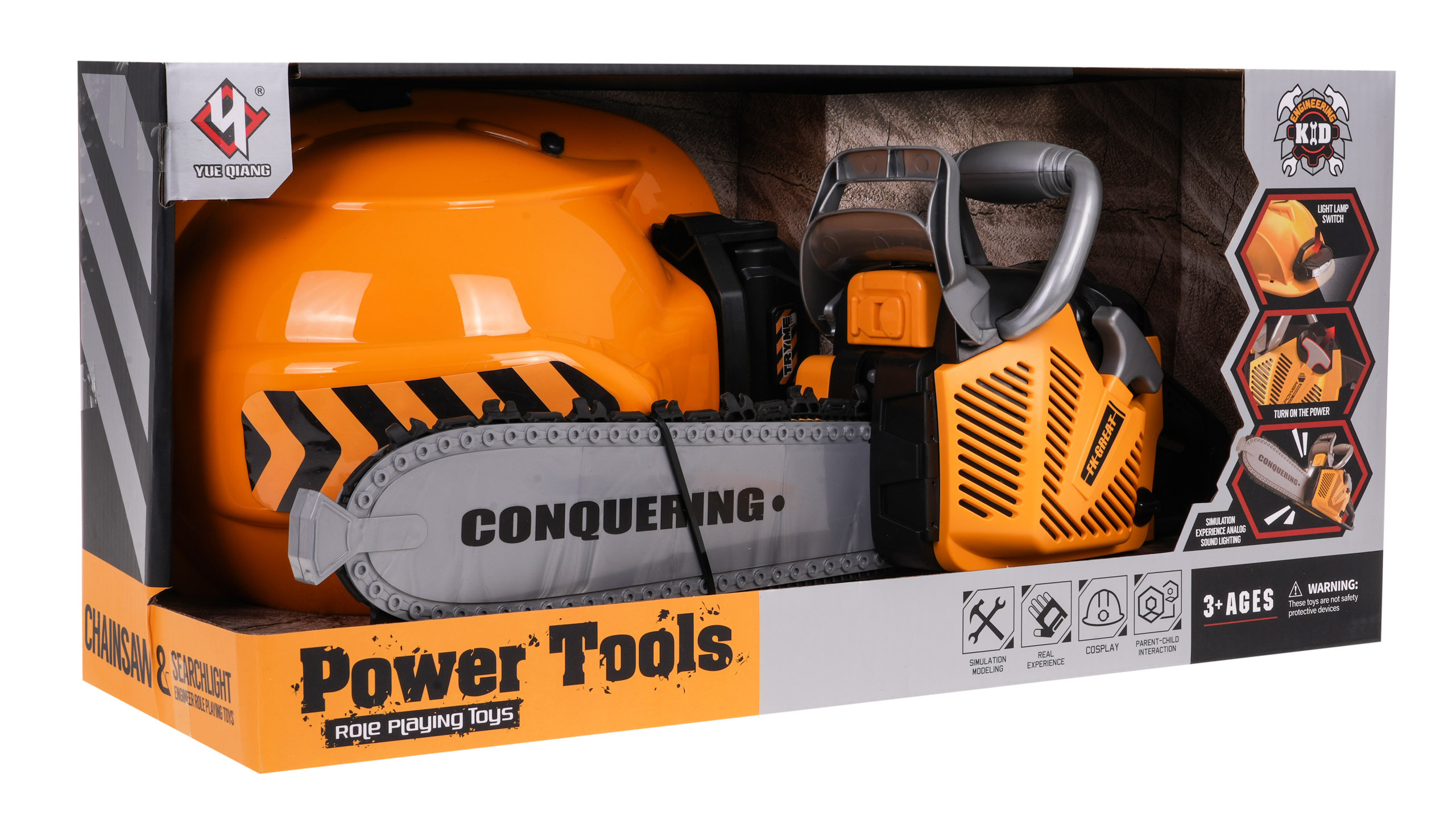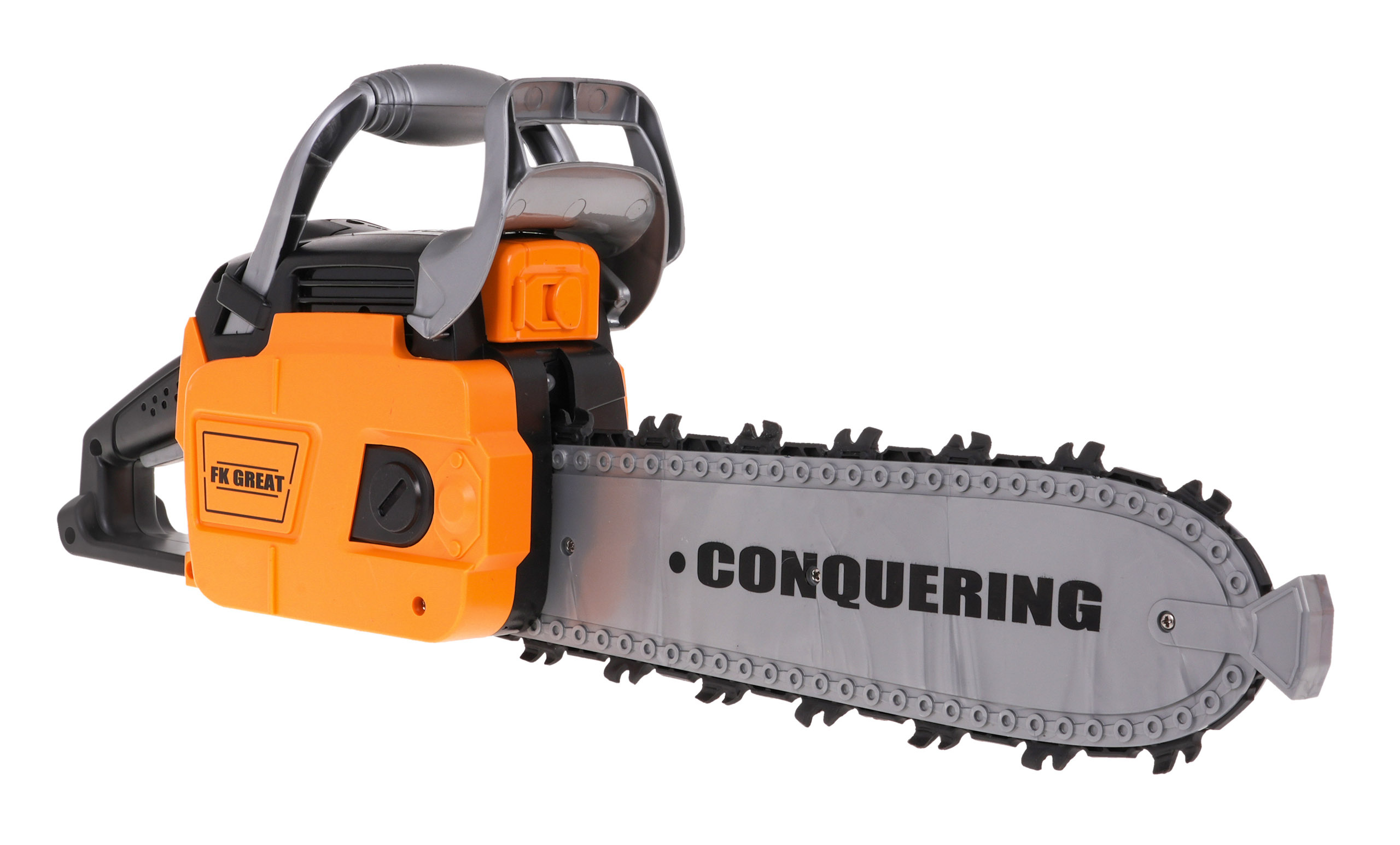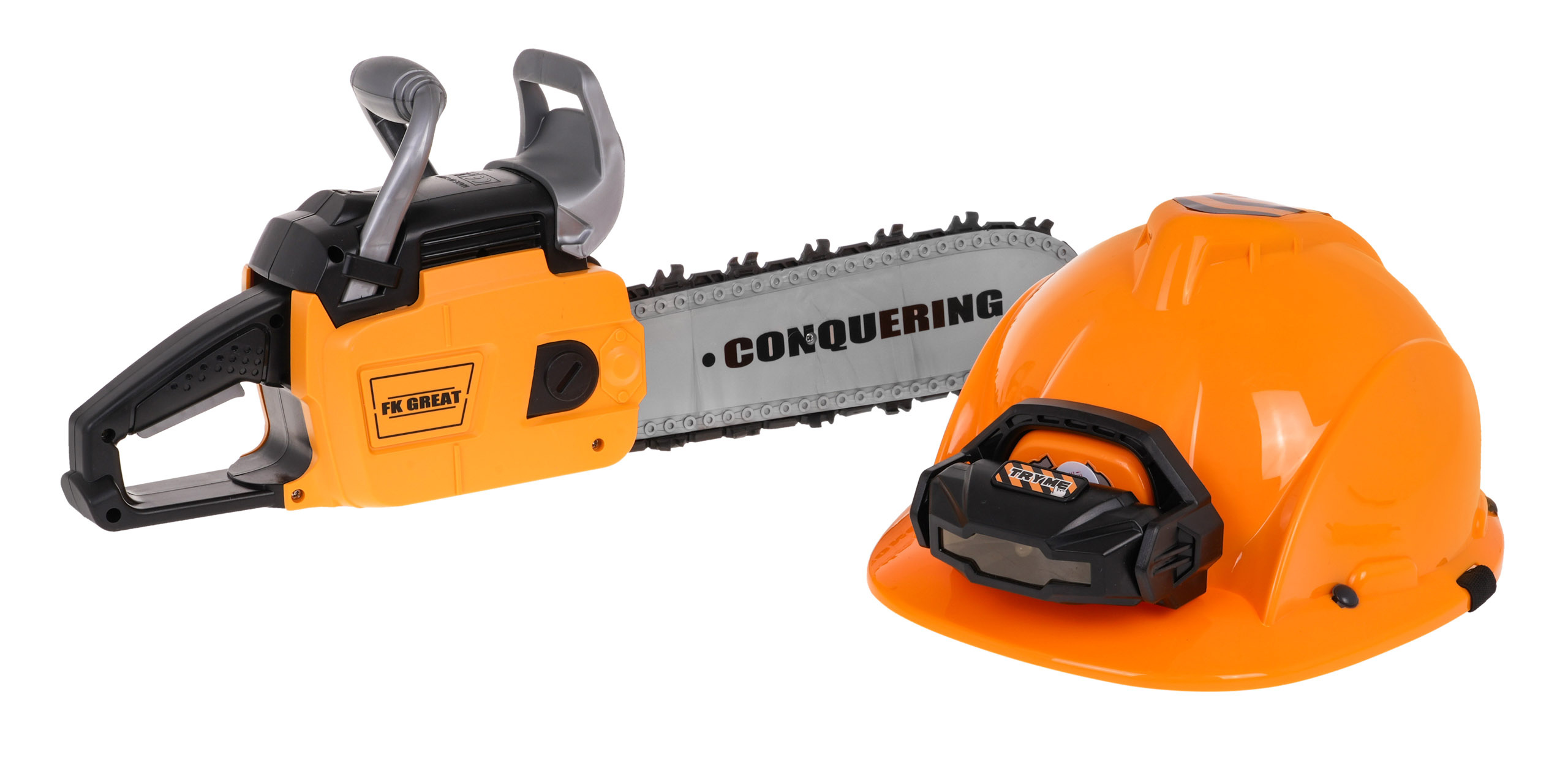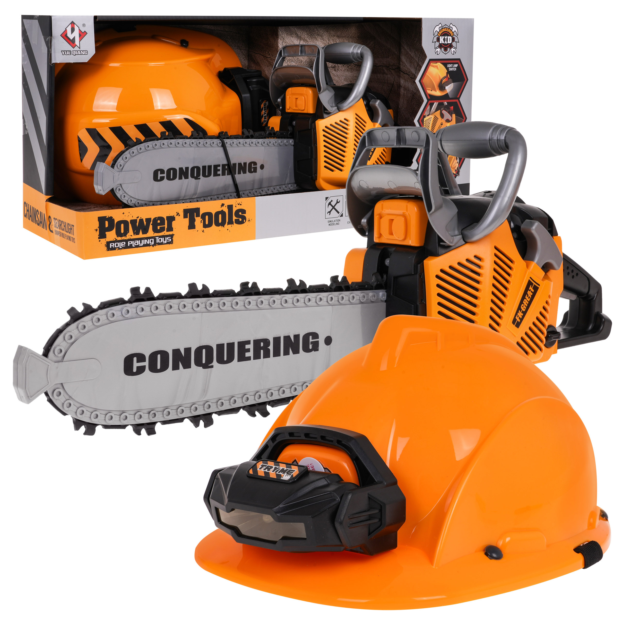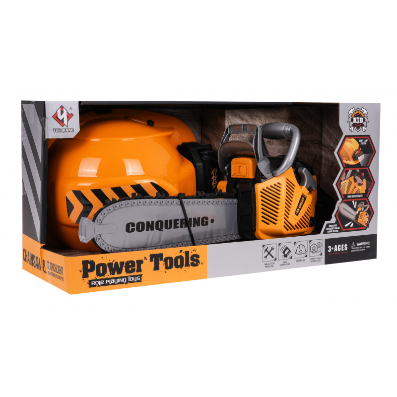 | Interaktivní sada mechanické pily se zvukovými efekty a helmou s baterkou je určena pro děti od 3 let. Pila je pro děti zcela bezpečná. Je vyroben z nejkvalitnějšího plastu a nemá ostré hrany. Řetěz byl vyroben z gumy. Chcete-li pilu nastartovat, zatáhněte za startovací šňůru a uslyšíte zvuk zážehu motoru. Chcete-li řetěz aktivovat, stiskněte a podržte spodní tlačítko na rukojeti. Řetěz se začne otáčet a vydávat řezavé zvuky. Součástí balení je přilba s nastavitelným světlem a podbradním řemínkem. Pila je napájena 3 bateriemi AAA 1,5 V, baterie nejsou součástí dodávky. Přilba je napájena 3 bateriemi AG13, které jsou součástí balení. Vlastnosti sady: - zvukové efekty (startování motoru, zvuky řezání), - světelné efekty - světlo na přilbě, LED dioda na přední straně pily, - rotující gumový řetěz. | |