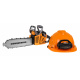 | Popis | Mechanická pila s přilbou |