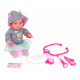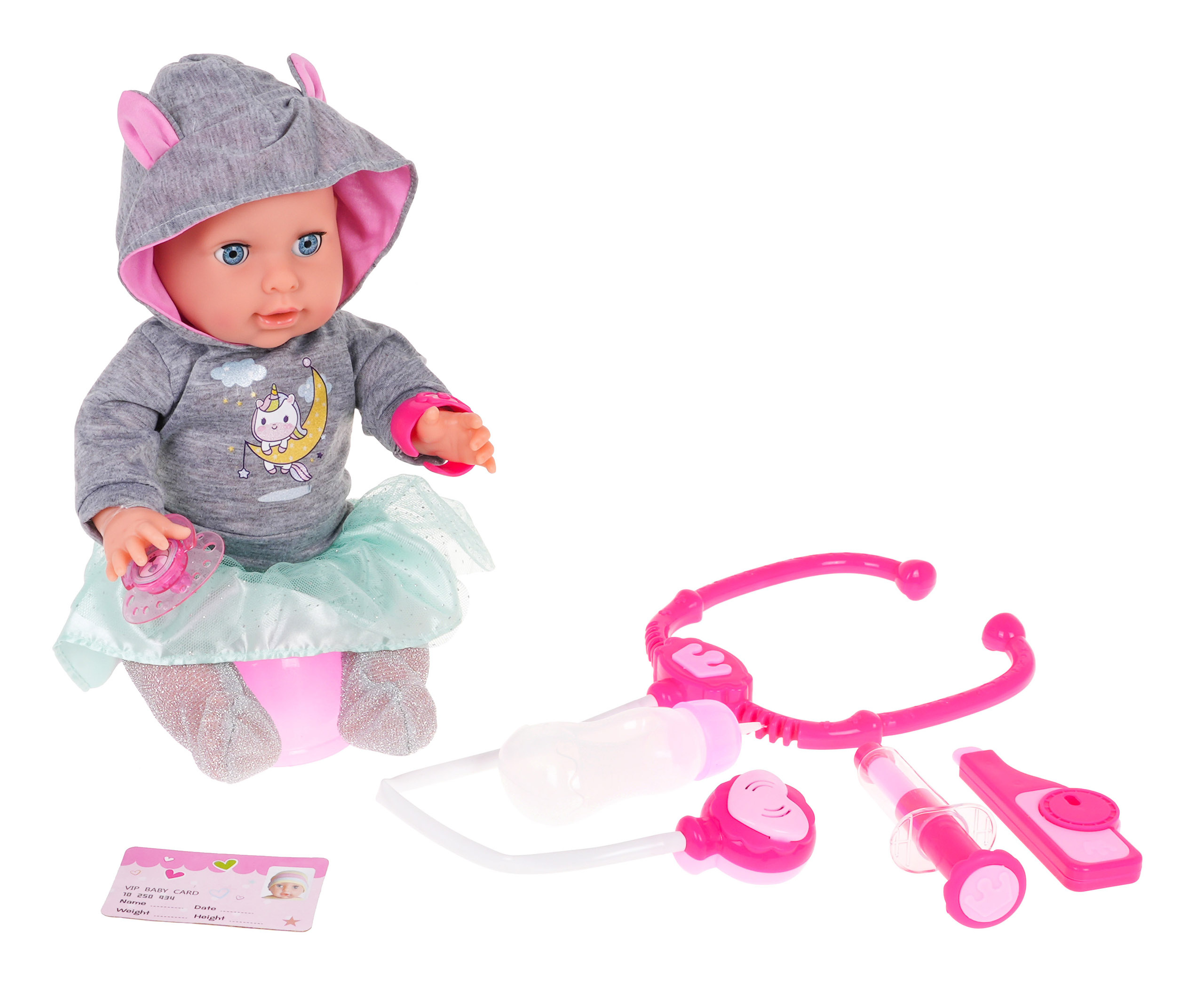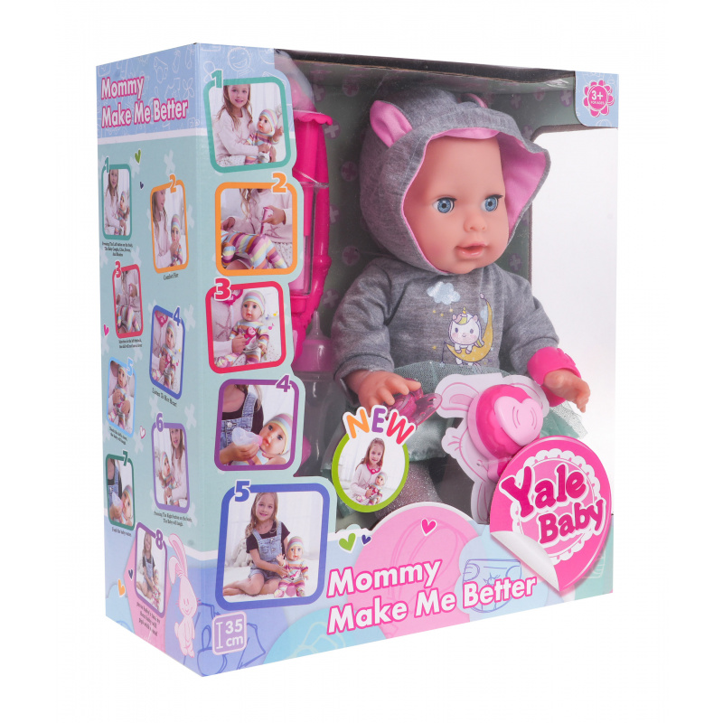 | Úžasná interaktivní panenka pro děti od 3 let. Panenka pláče, zavírá a otevírá oči, pije vodu, čůrá, hýbe rukama a nohama, směje se a dokonce má horečku, kýchá a kašle. Součástí balení je mnoho doplňků, mezi nimi magnetická figurína a příslušenství pro lékaře. S touto panenkou se vaše dítě naučí zodpovědnosti a péči o druhé. "Nemocným" panenkám lze píchnout injekci, změřit teplotu a provést auskultaci stetoskopem. Hračka je napájena 3 bateriemi AA 1,5 V, baterie nejsou součástí balení. Stetoskop je napájen 2 bateriemi AG13, které jsou součástí balení. Vlastnosti panenky: - má zvukové efekty v podobě pláče, smíchu, kýchání, kašlání, bublání a chrápání, - zavře a otevře oči, - pohybuje rukama a nohama (ručně), - pije vodu, - čůrá do nočníku, - "Horečnatá" - rozzáří se jí tváře, - má magnetického panáčka, který panenku "uklidňuje", - má mnoho příslušenství. | |