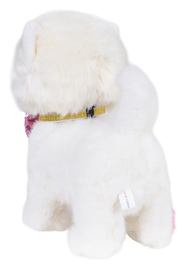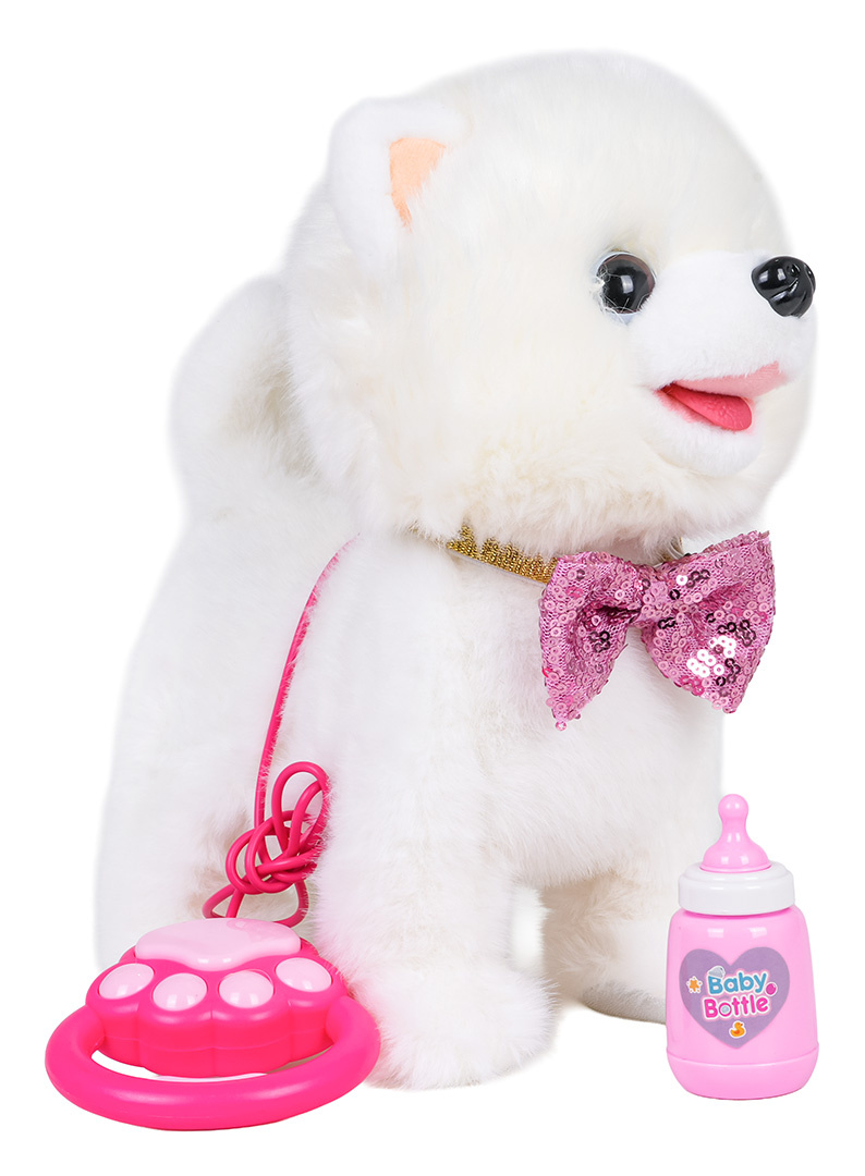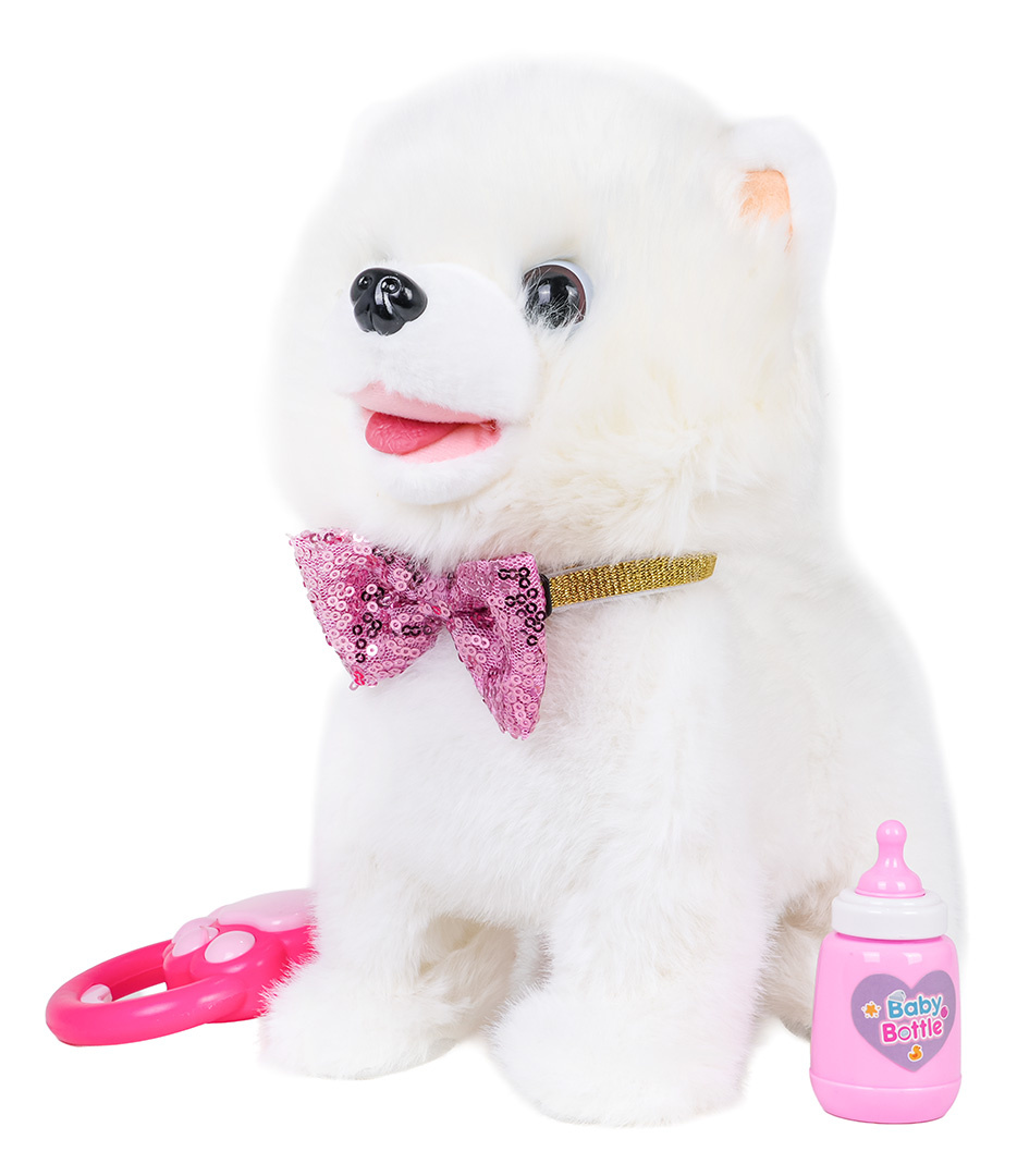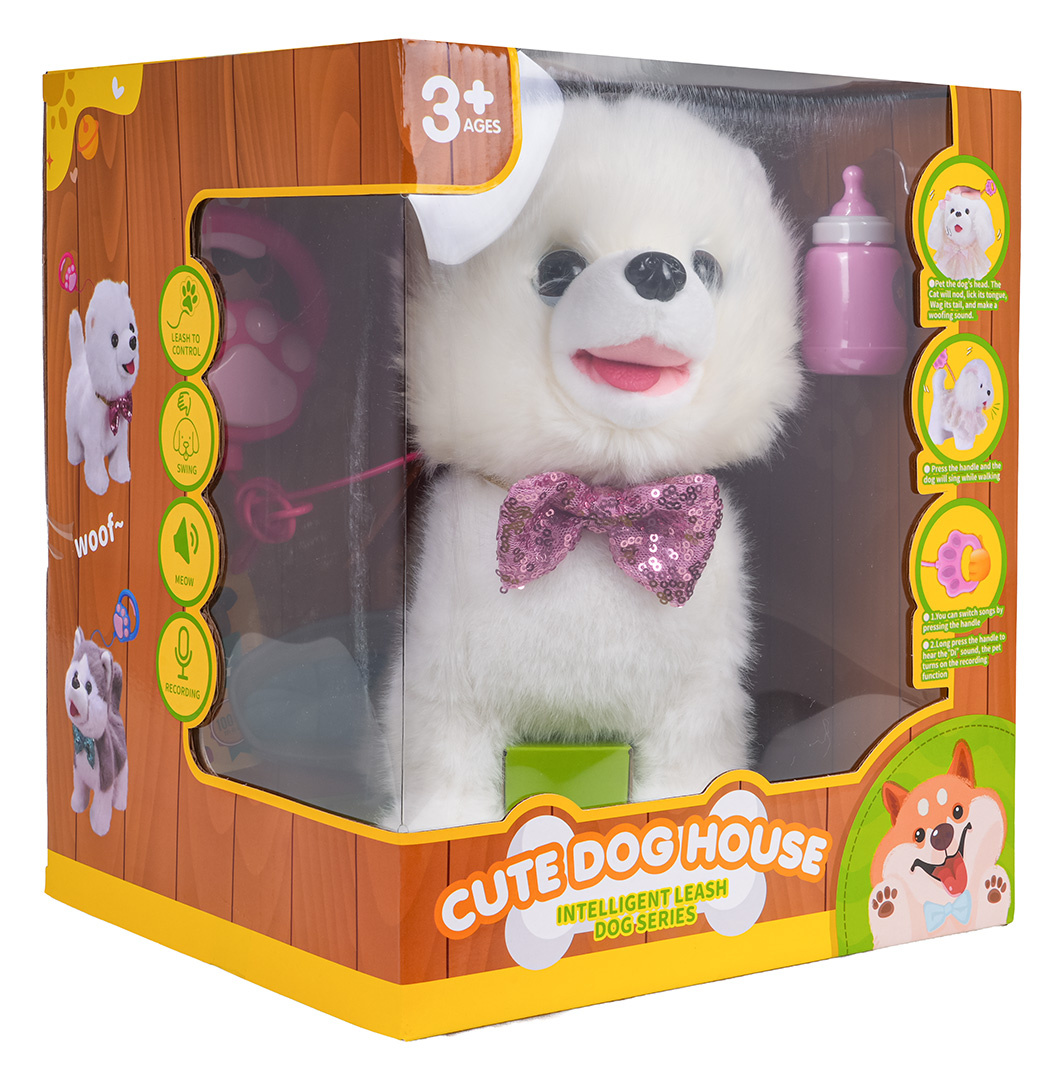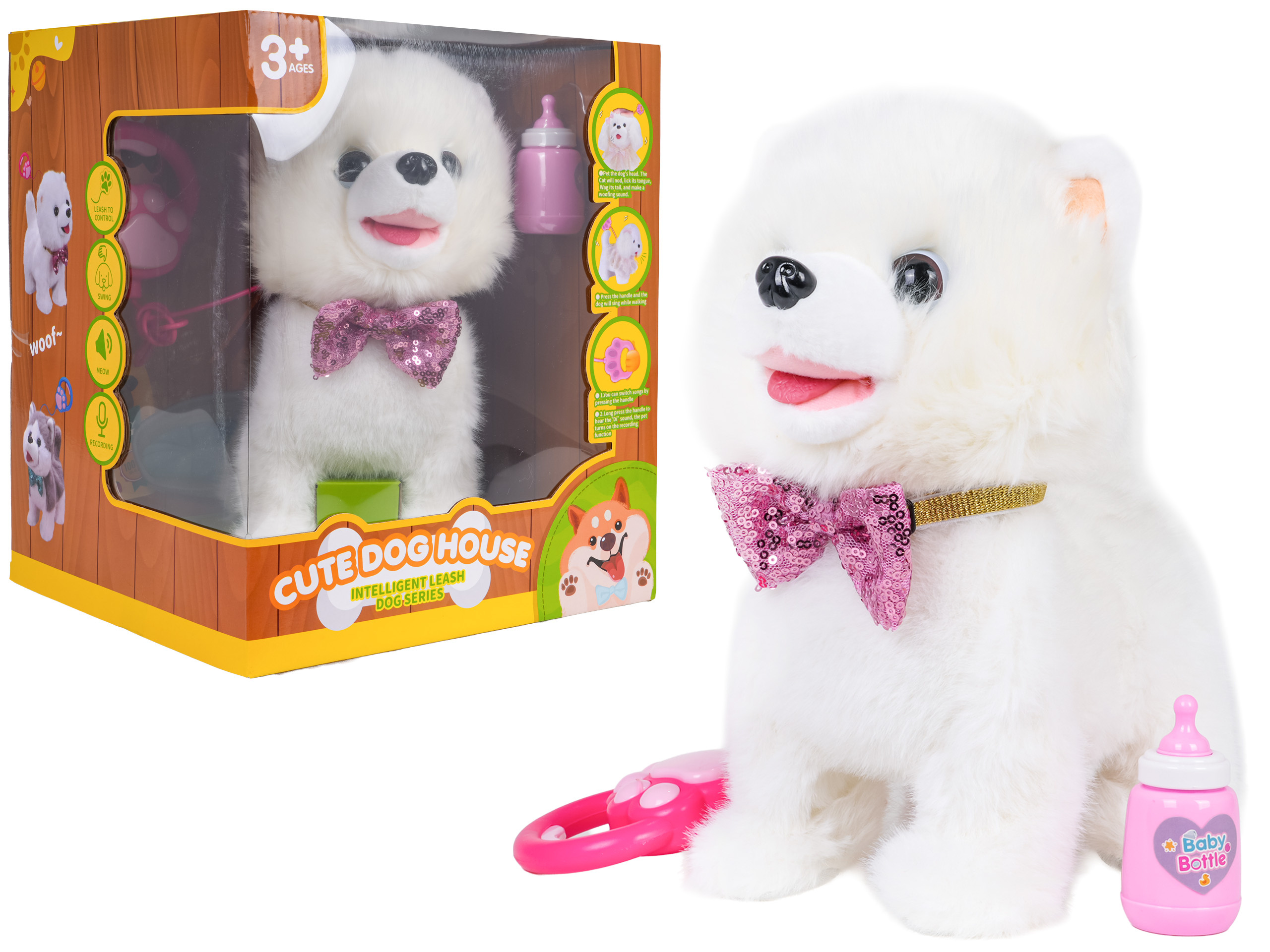 | Interaktivní, senzorický bílý pejsek pro děti od tří let. Pejsek je vyroben z měkkého, pro děti bezpečného materiálu, bude ideální na hlazení a objímání. Hračka se nápadně podobá skutečnému zvířátku a má interaktivní funkce. Dotkni hlavy pejska a zvířátko s tebou začne interagovat. Bude kývat hlavou, vrtět ocáskem, vydávat štěkající zvuk, olizovat jazýčkem a chodit. Pejsek má interaktivní vodítko. Krátké stisknutí držadla vodítka způsobí, že pes může štěkat, vyplazovat jazyk, vrtět ocasem a chodit v rytmu hudby. Stisknutí a podržení rukojeti spustí funkci nahrávání a přehrávání, pejsek bude opakovat po tobě. V sadě se štěňátkem se nachází láhev. Hračka je napájena bateriemi typu 3 x AA 1,5V (nejsou součástí balení).