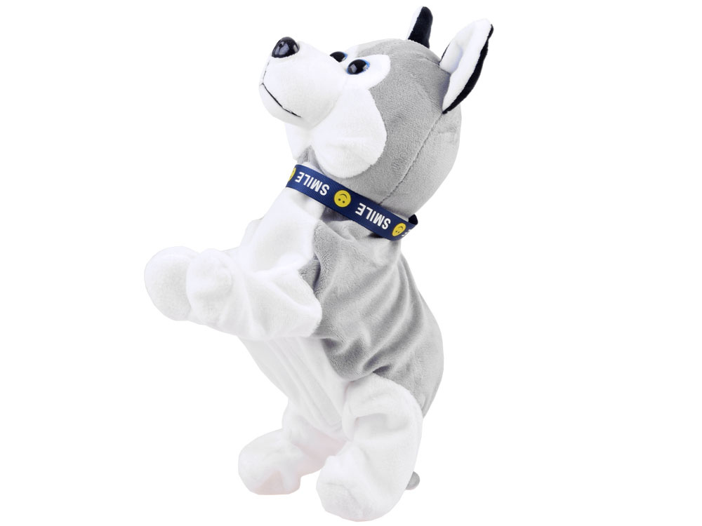Plyšový čtyřnohý pes je snem většiny dětí. Proto představujeme rozkošného psa huskyho. Pes reaguje na dotek dítěte.