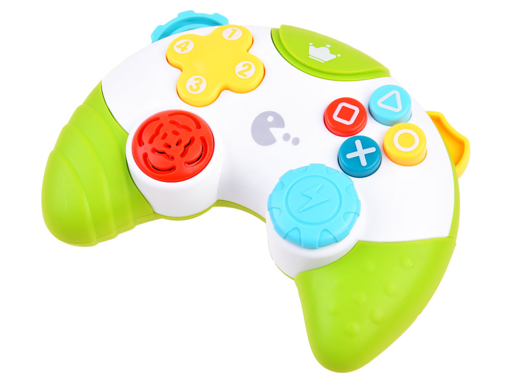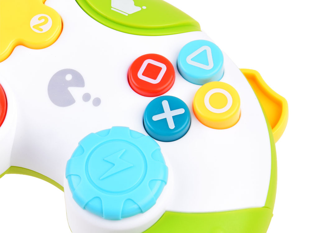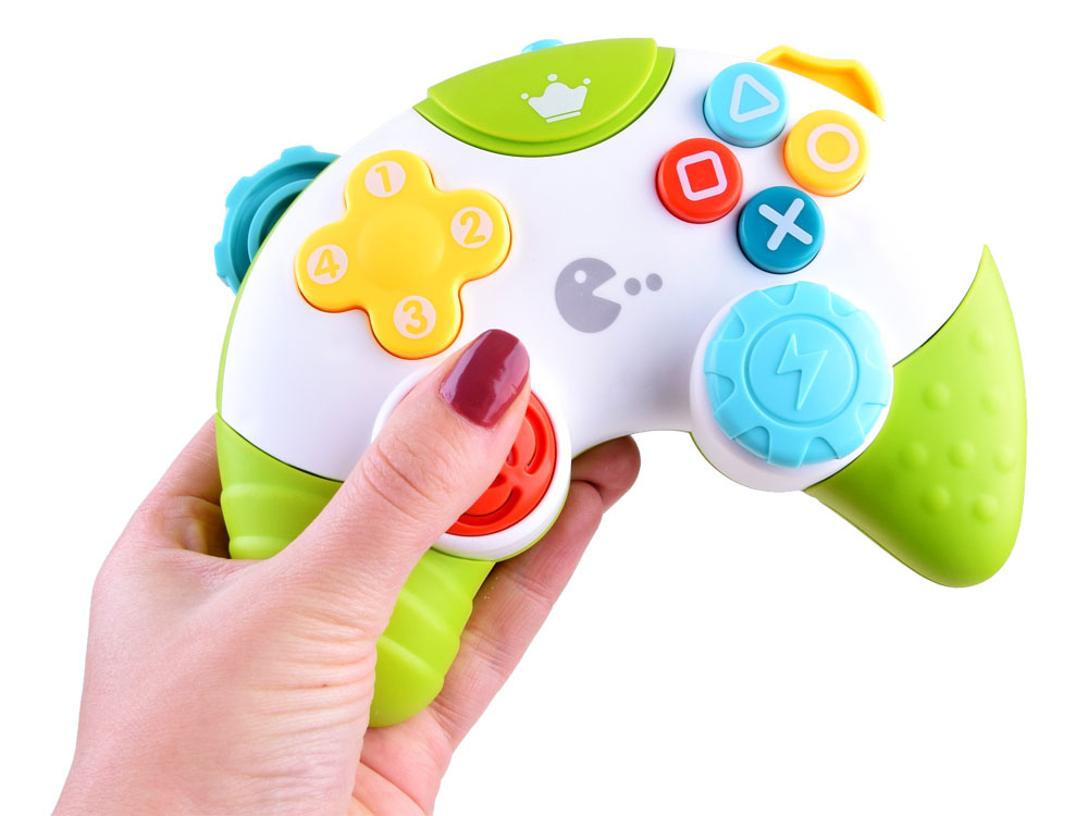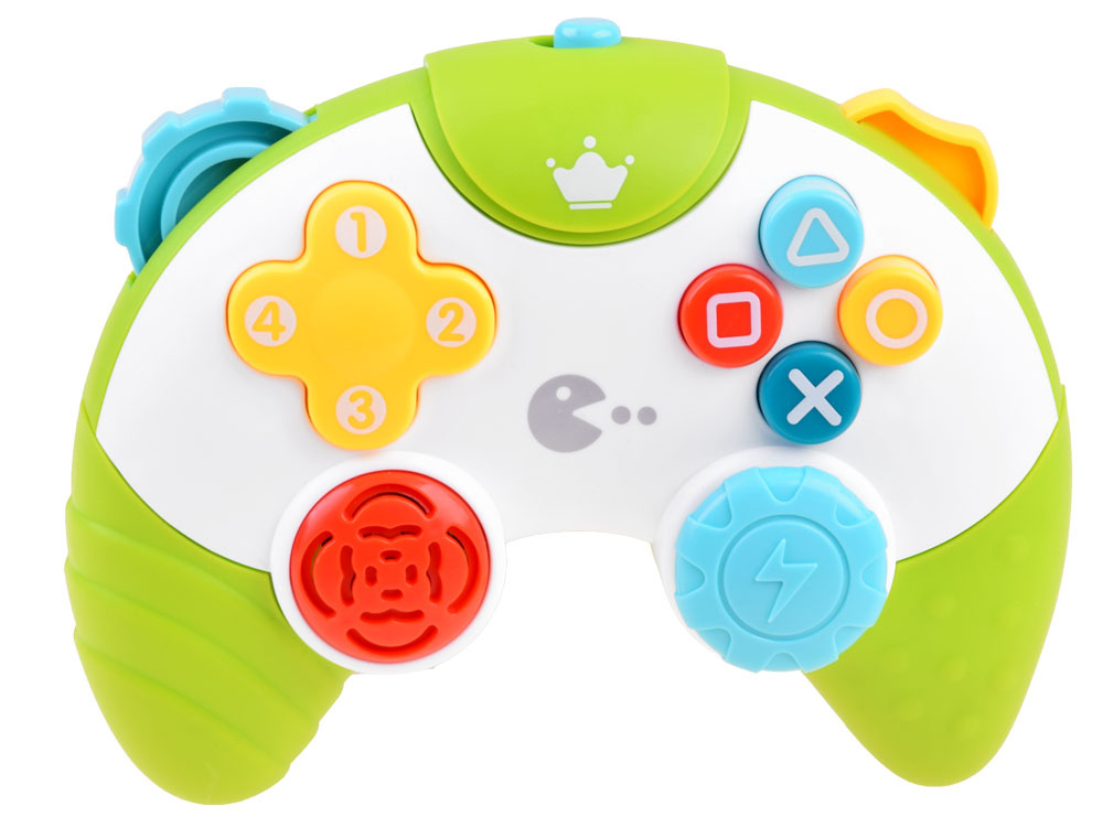 Hudební hrací ovladač je hračka určená pro batolata, která chtějí přejít nejen na dálkové ovládání, telefon, ale také na herní ovladač. Není příliš známou skutečností, že děti své rodiče pozorně sledují a rády je napodobují. Proto nabízíme tento senzační barevný ovladač, která jistě upoutá pozornost každého batolete a pomůže ho zachránit před rvačkou se starším sourozencem: ) Ovladač bude ideální pro rodiče i starší sourozence, kteří vědí, že je neradi ruší. Stačí stisknout spínač umístěný v horní části a vaše dítě si může hrát. Umístění tlačítek odpovídá skutečné konzoli, takže hračka vypadá realističtěji. Pod každým tlačítkem se skrývají zvuky, melodie a blikající světlo. Největší tlačítko na konzoli umožňuje vytvářet vlastní písničky, což je skvělé pro rozvoj fantazie a hudebního nadání vašeho batolete. Po stranách ovladače jsou prvky, které při pohybu vydávají chrastivý zvuk. Ovladač je velmi pěkně a působivě vyrobený, velikostně přizpůsobený malým dětským rukám.
