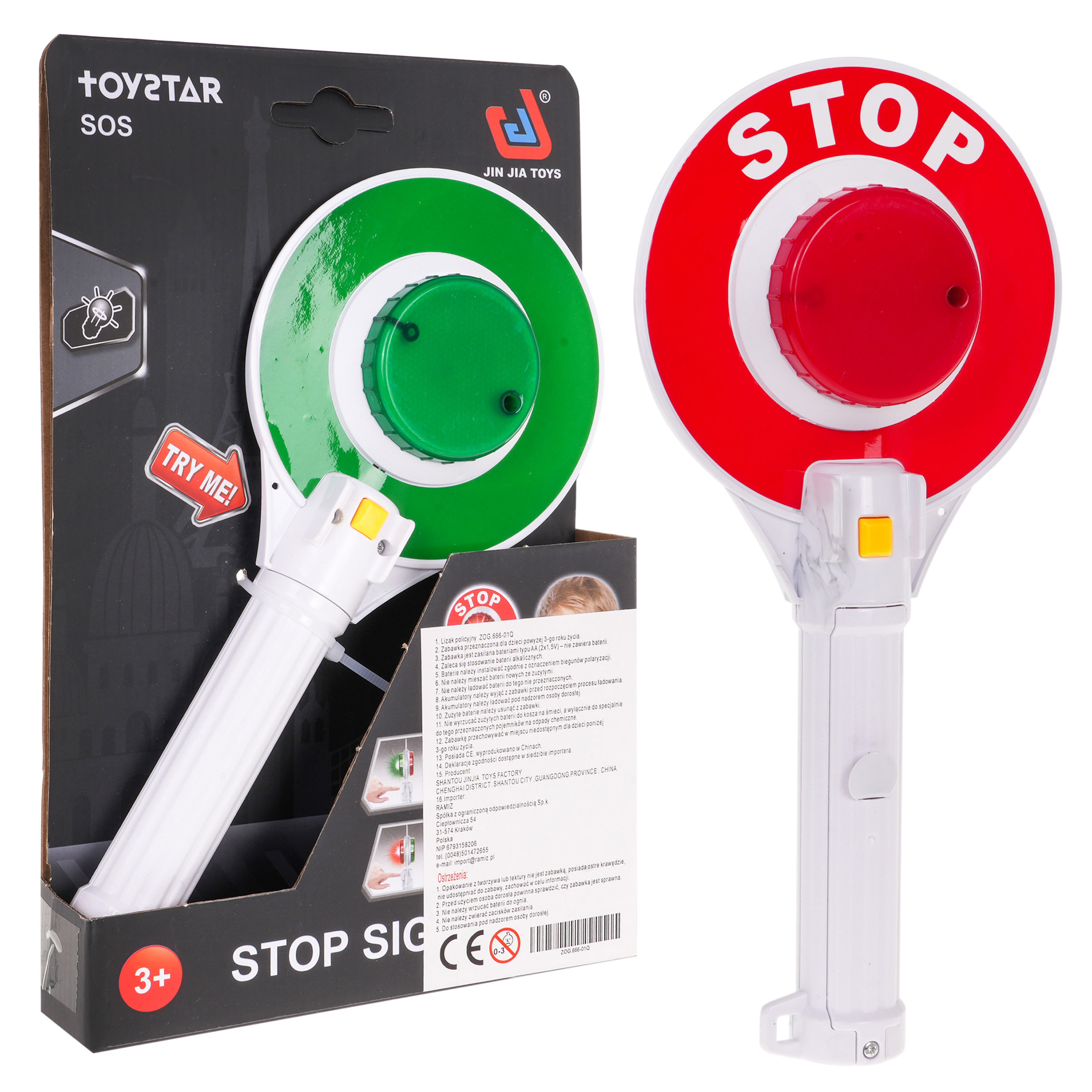 Policejní lízátko se světelnou funkcí je hračka pro děti od 3 let. Lollipop napodobuje skutečné vybavení používané policií. Na jedné straně lízátka je zelené světlo a na druhé červené světlo. Zelená znamená, že můžete jet, a červená, že musíte okamžitě zastavit. Hračka je napájena 2 bateriemi AA, které jsou součástí balení.