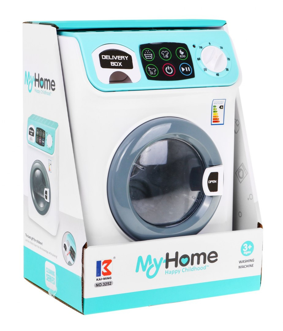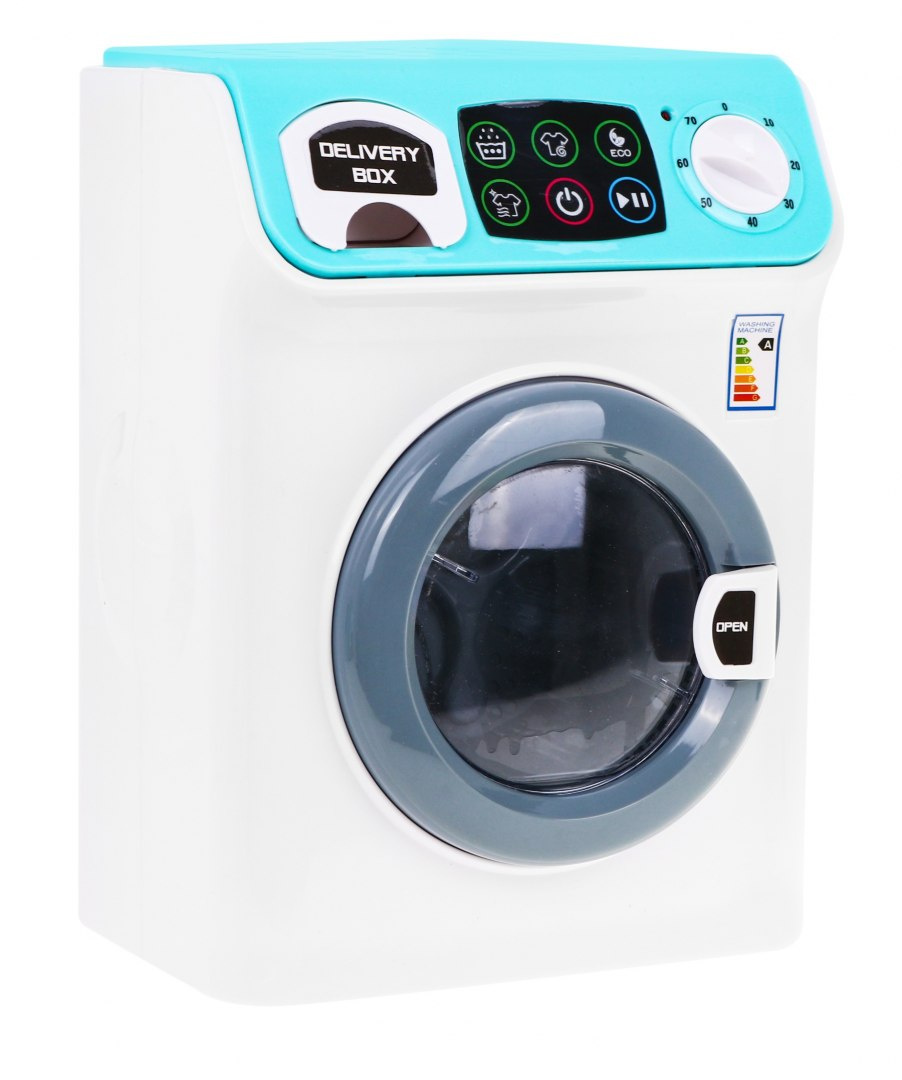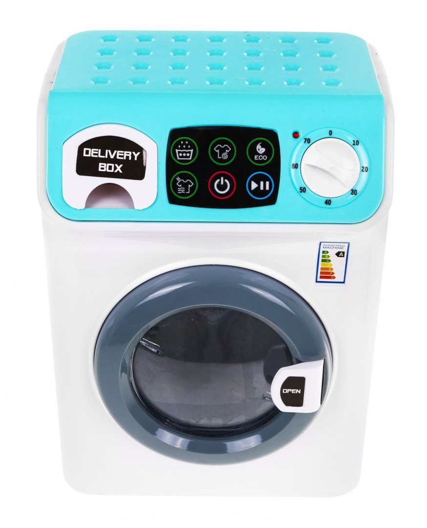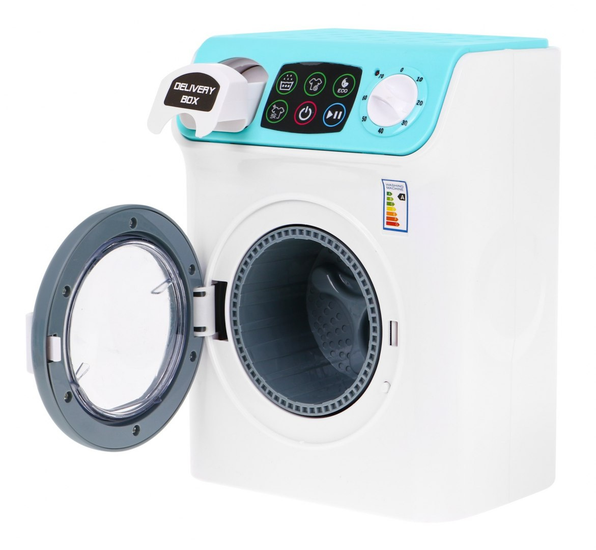 Pračka se zvukovými a světelnými efekty, otevíracím bubnem a zásuvkou na prací prostředky je určena pro děti od 3 let. Hračka vypadá a zní jako skutečná pračka. Pračka má dotykový panel pro výběr pracích programů a v závislosti na cyklu uslyšíte z pračky různé zvuky a na přední straně hračky se rozsvítí kontrolka LED. Na boku je pohyblivý knoflík pro změnu teploty. Hračka je napájena 3 bateriemi AA (nejsou součástí balení).