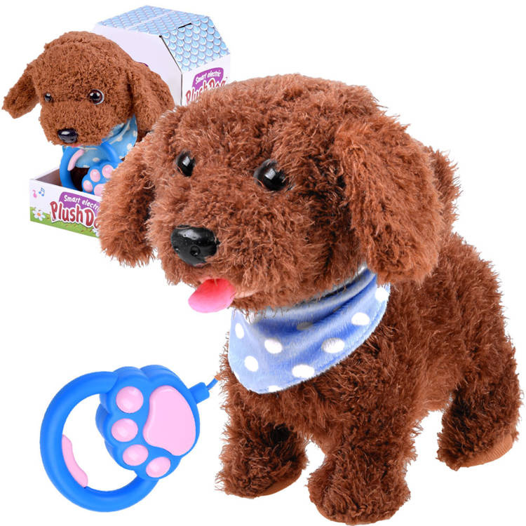 Interaktivní pes na vodítku může nahradit dětský sen mít skutečného domácího mazlíčka. Pravděpodobně neexistuje dítě, které by nesnilo o vlastním psovi. Plyšový interaktivní pes je napájen 3 1,5V bateriemi AA, díky kterým může štěkat, chodit, vrtět ocasem a kňučet. Pes reaguje na doteky, pohlazení dítětem štěkotem, vrtěním ocasu, radostí.