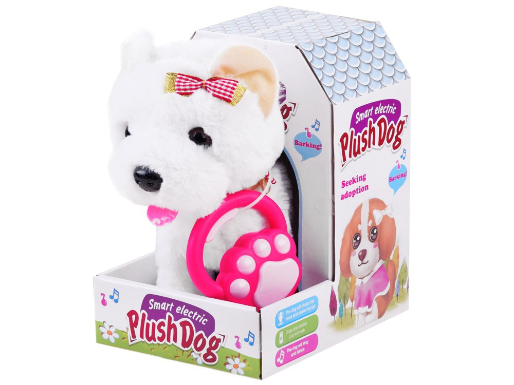 Se psem si lze hrát kdekoli, čtyřnožec se pohybuje po rovném povrchu. Objímání a hlazení čtyřnohého psa dodá každému dítěti spoustu pozitivní energie. Plyšový pes se může stát nejlepším přítelem dítěte. Téměř každé dítě má období, kdy cítí velkou potřebu skutečného domácího mazlíčka. Je ale těžké splnit dětem všechna přání, zvlášť když sní o opravdovém domácím mazlíčkovi a my nemáme možnost ho mít. Proto, abychom z poloviny nebo alespoň minimálně splnili jejich přání, nabízíme vám tohoto rozkošného plyšového psa. Rozkošný plyšový pes na vodítku potěší každého fanouška milovaných domácích mazlíčků.
