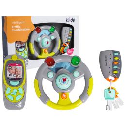 Interaktivní sada pro řidiče pro děti 3+ Volant + dálkové ovládání s klíči + telefon + zvuky Světla