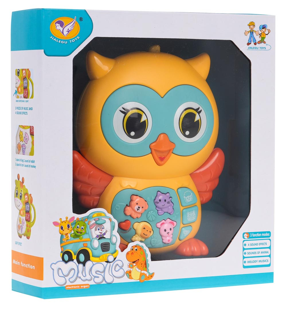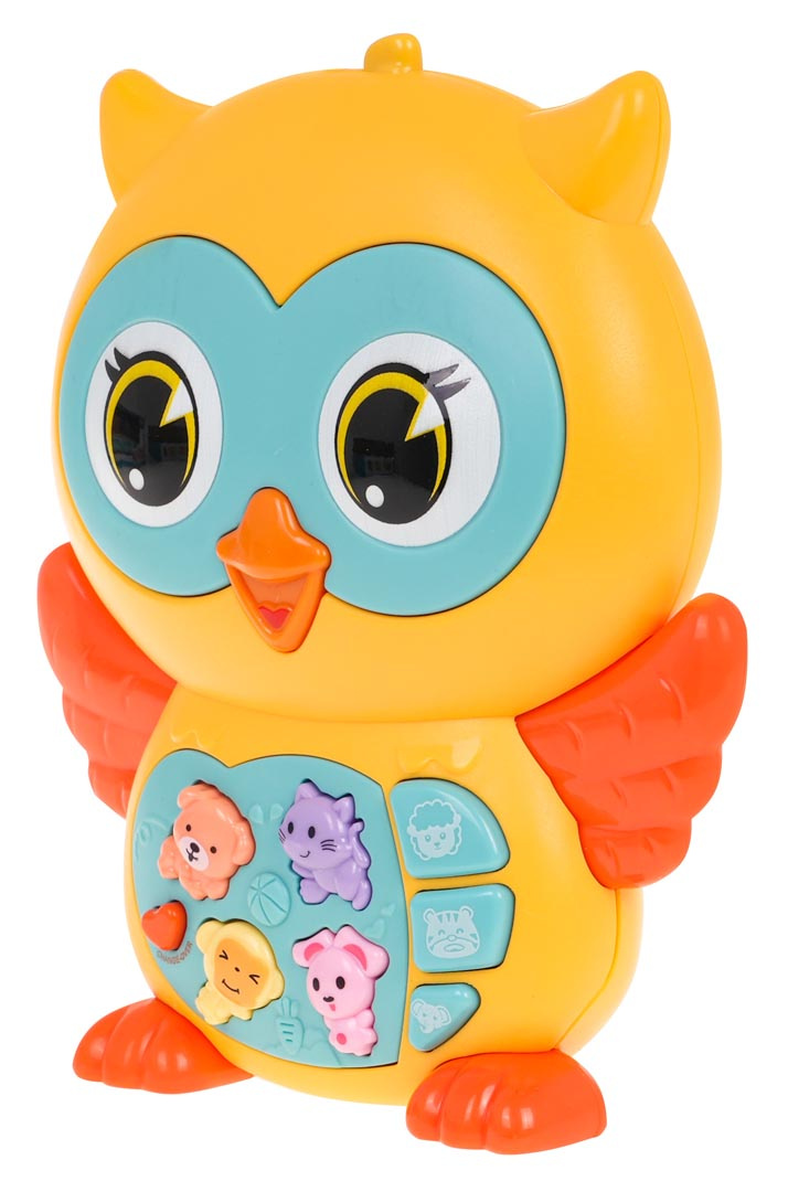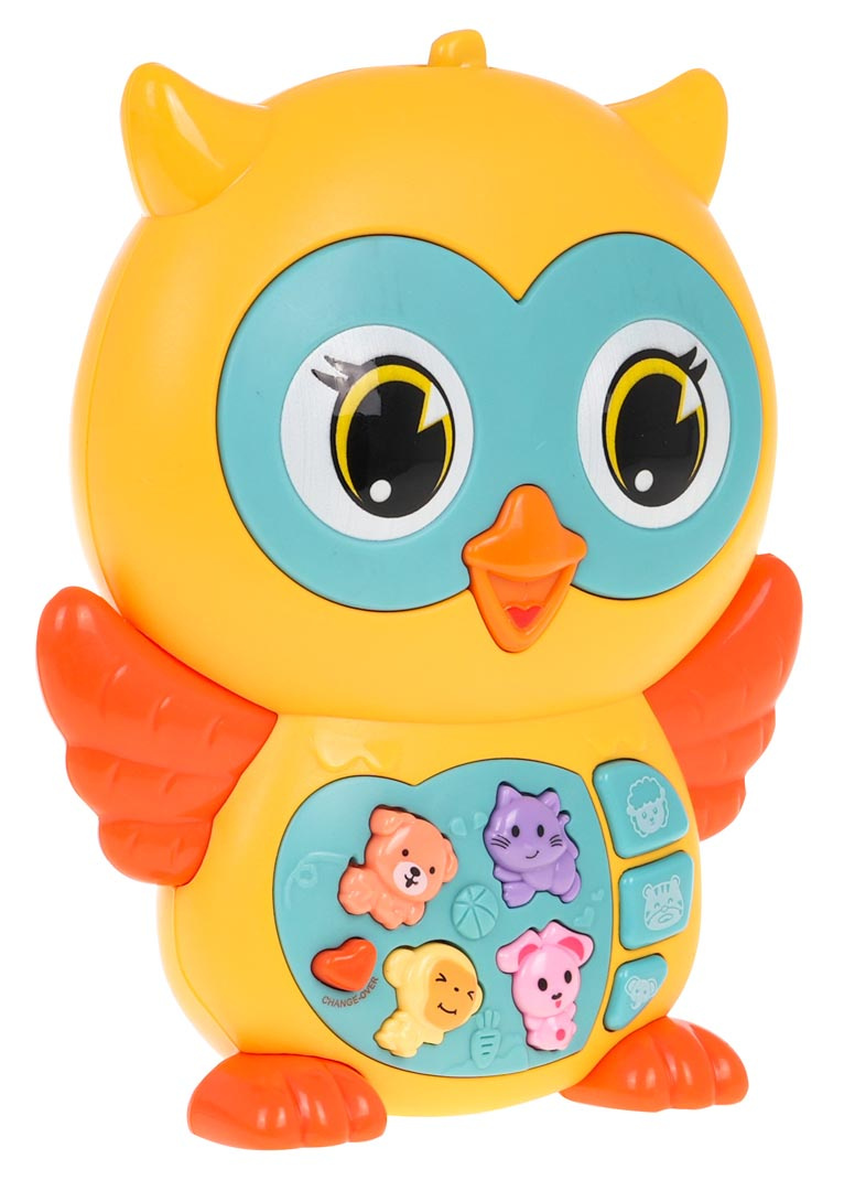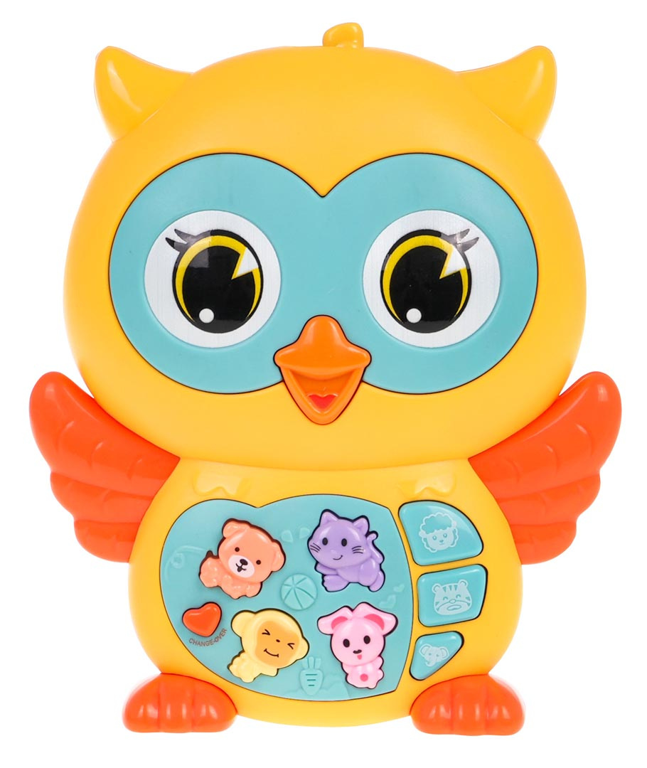 Interaktivní sova s funkcí zvuku a světla pro děti od 6. měsíce věku. Sova byla vyrobena z nejkvalitnějšího plastu, je odolná proti nárazům a bezpečná pro malé děti, nemá žádné ostré hrany. Sovu vyrobili v živých barvách, které přitahují dětský zrak a povzbuzují ke hře. Na bříšku sovy se nachází panel s tlačítky, která spouštějí zvuky zvířat (v prvním režimu), melodie, zvuky Do-Re-Mi (v druhém režimu) a světelné efekty v podobě blikajících světýlek na křidélkách sovy. Režimy měníme tlačítkem ve tvaru srdíčka. Hračka má regulaci hlasitosti. Je napájena bateriemi typu 2 x AA 1,5 V (nejsou součástí balení)