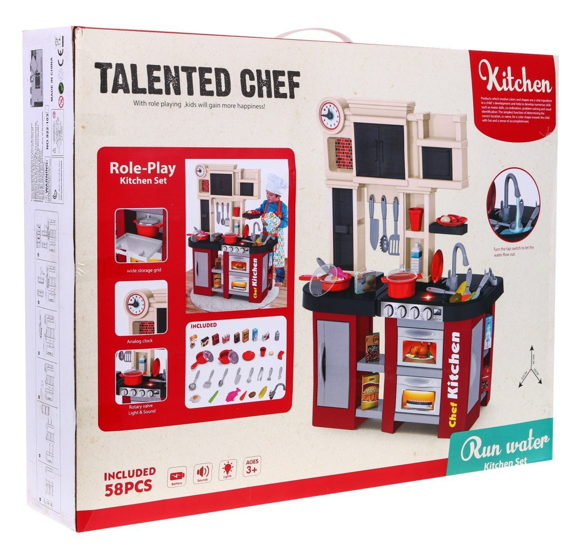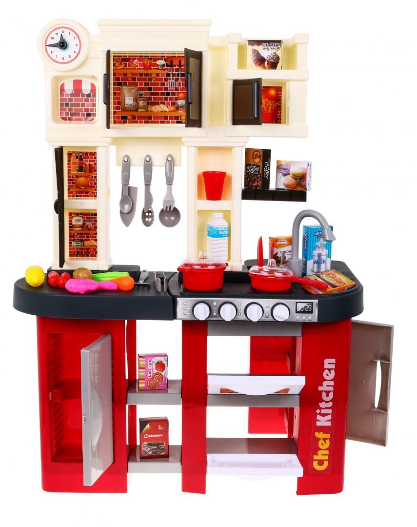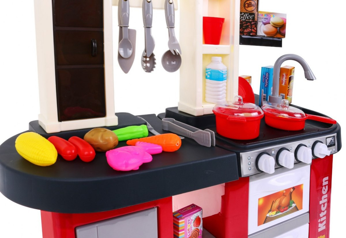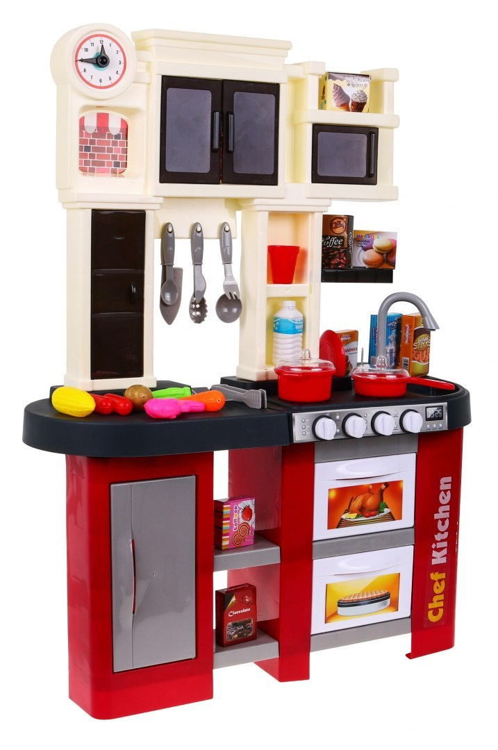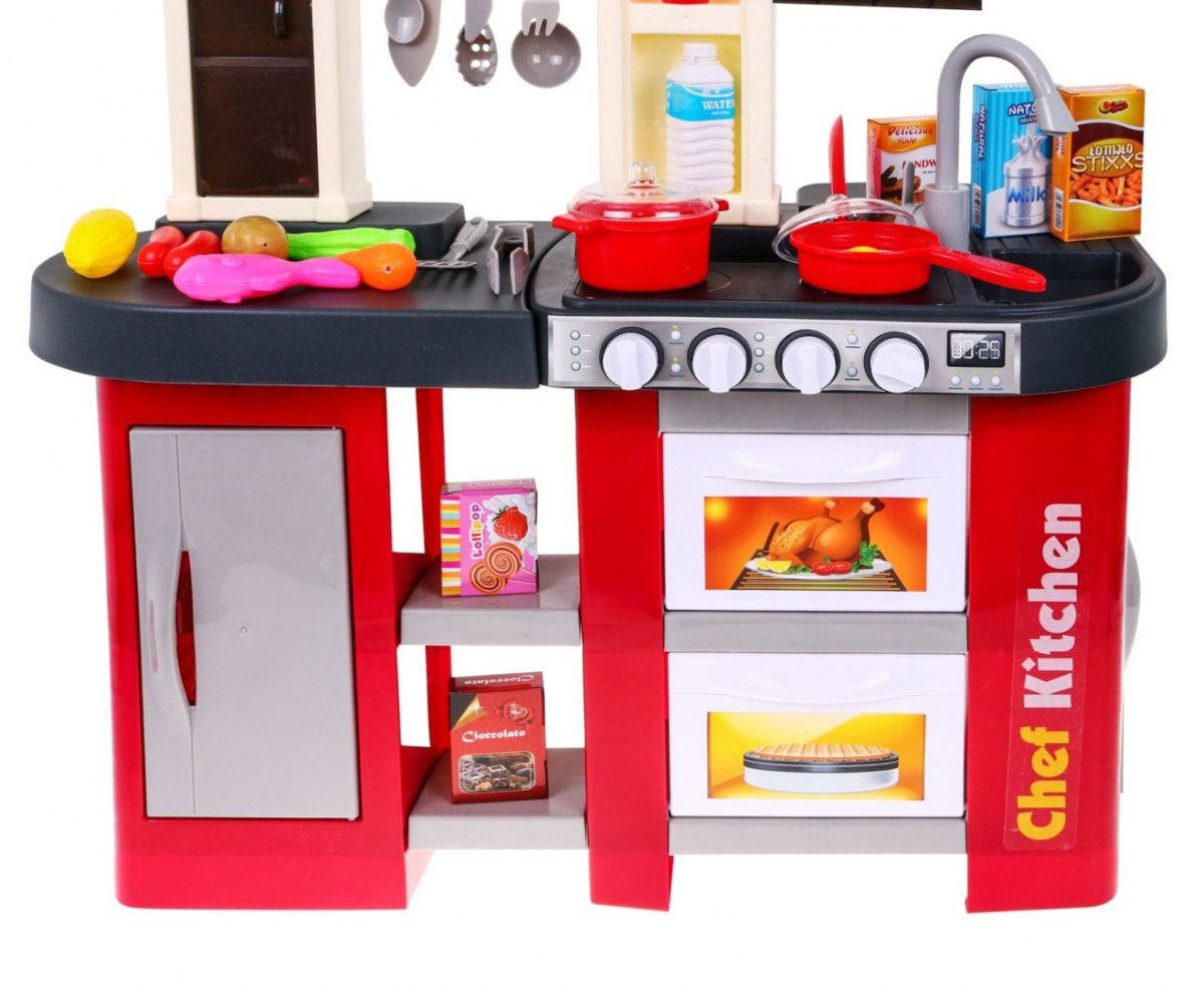 Kvalitní velká interaktivní kuchyně se skutečnou tekoucí vodou z kohoutku, světly a zvuky vaření a smažení.