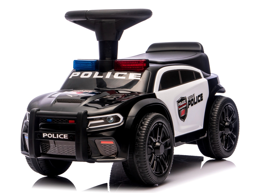 Sportovní dětské odrážedlo, Model J3 POLICE Verze s nárazníkem HUDBA a policejní světla BARVA ČERNÁ Otočná kola, otočný volant