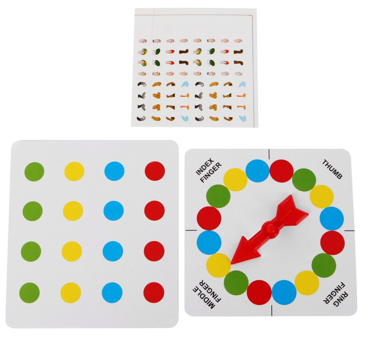 Rozhodčí roztočí šipku a ukáže barvu, na kterou je třeba nohu nebo ruku posunout.