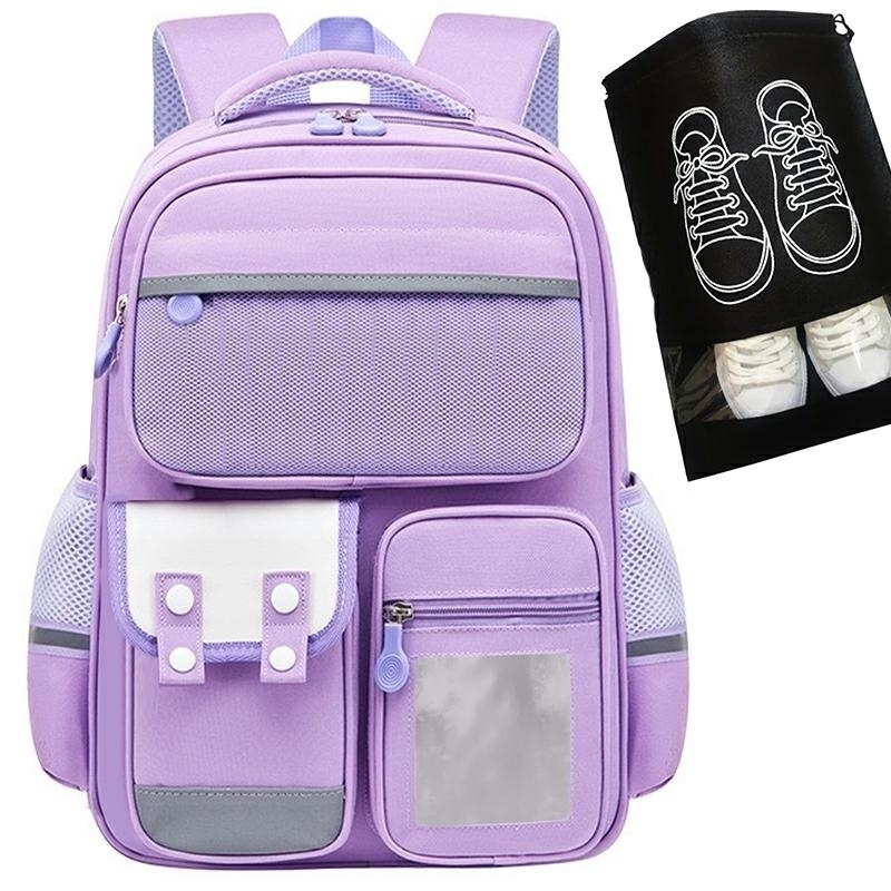 Voděodolný školní batoh se dvěma komorami, dvěma kapsami, přihrádkou na zip a elastickou boční kapsou. Specifikace: Konstrukce: Hlavní komora na zip / přední komora na zip / síťovaná kapsa na zip / kapsa s klopou na suchý zip / průhledná přihrádka na zip / elastická boční kapsa Materiál: Voděodolná tkanina Rozměry produktu: 43x31x15 cm Navíc uvnitř taška na obuv. množství na paletě: 200 ks