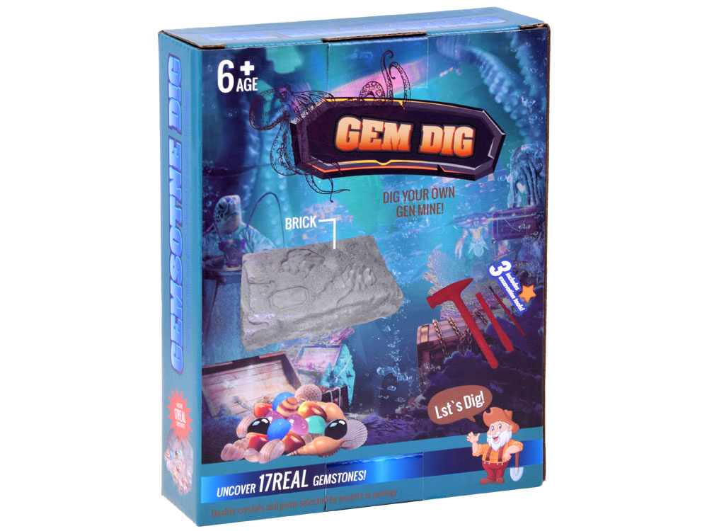 Vzdělávací sada pro malé archeology a hledače pokladů. Sada na vykopávání kamene je skvělá pro všechny malé průzkumníky a objevitele. Hračka pro kutily, která simuluje archeologické vykopávky v nové, jedinečné a atraktivní podobě. Úkolem badatele je pomocí kladiva, dláta a štětce získat krystaly, diamanty a kameny ukryté v sádrovém odlitku.