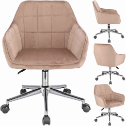 Elegantní kancelářské křeslo potažené měkkým sametem, spojující moderní design s výjimečným komfortem. Regulace výšky a 360stupňová rotace zajišťují pohodlí při práci.Solidní základna na pěti kolečkách zaručuje stabilitu a mobilitu. Ideální do kanceláří a domácích pracoven, dodávající prostoru styl a třídu.